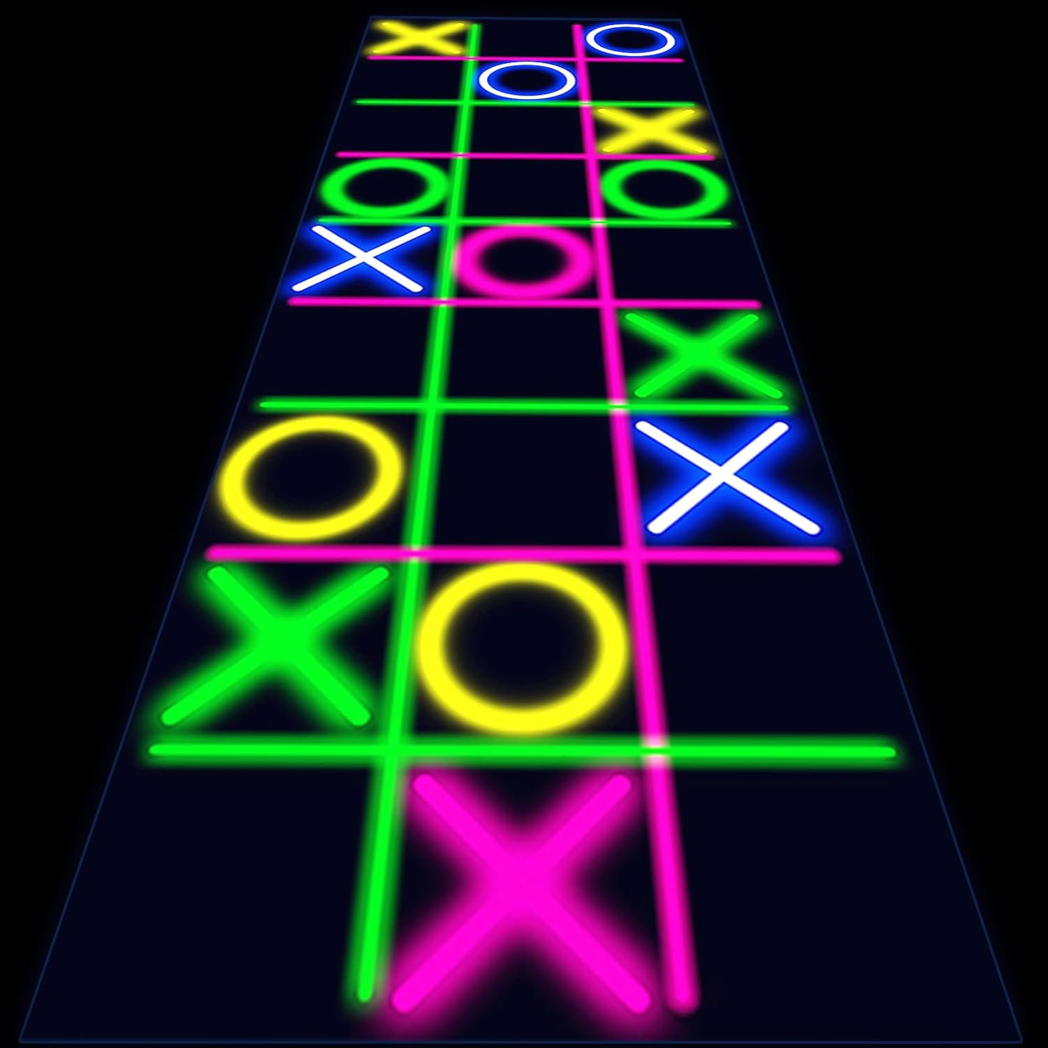 Haull 118 x 39 Inch Neon Light up Dance Floor Glow in The Dark Runner UV Reactive Blacklight Floor Aisle Runner Decor Wall Props for 80s 90s Neon Birthday Party Decorations(Tic Tac Toe)