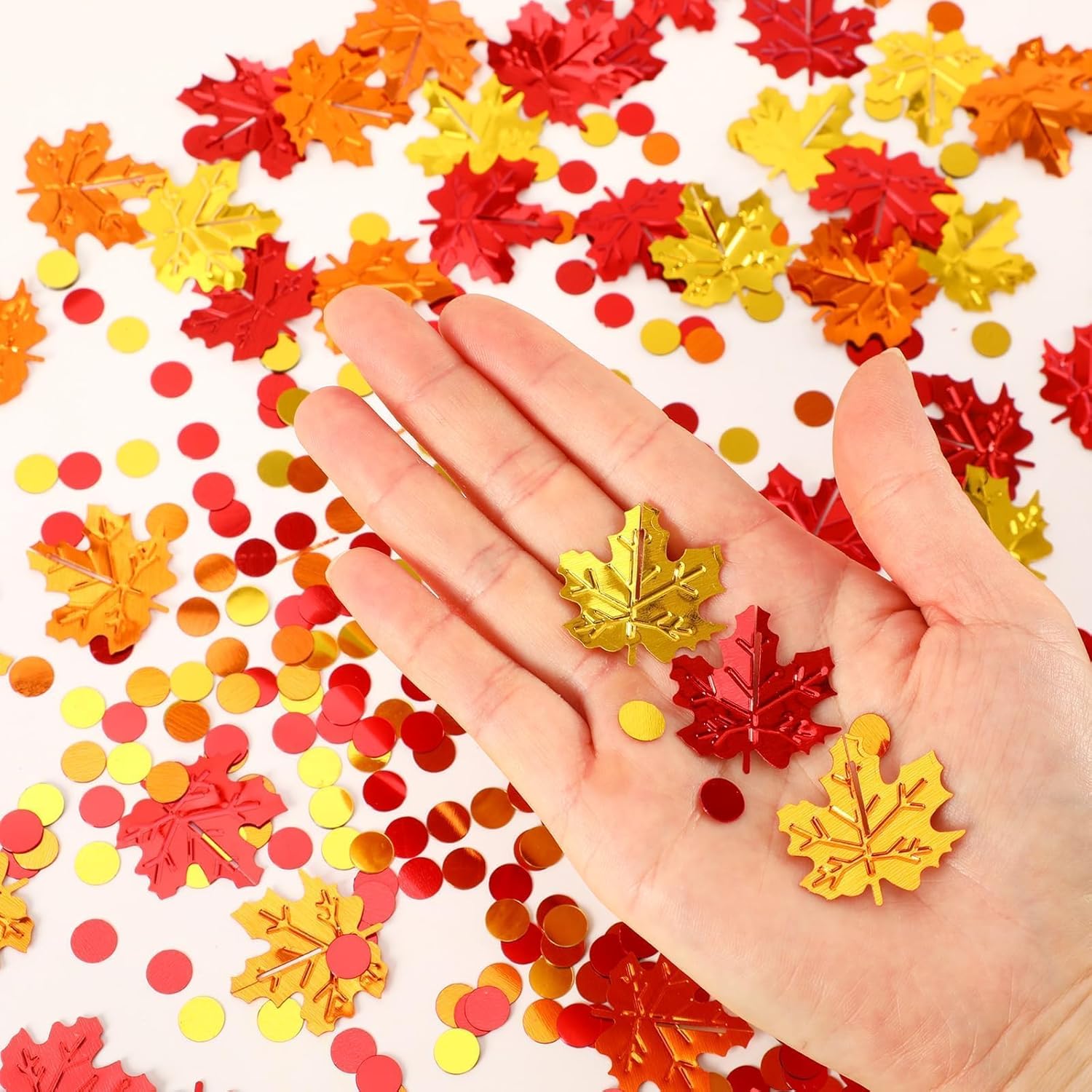 • Diverse Styles: Thanksgiving confetti is inspired by the beautiful colors of maple leaves in autumn, matched with small discs with appropriate size and color matching, and decorated with beautiful autumn decorative themes to help you decorate various parties in autumn and Thanksgiving