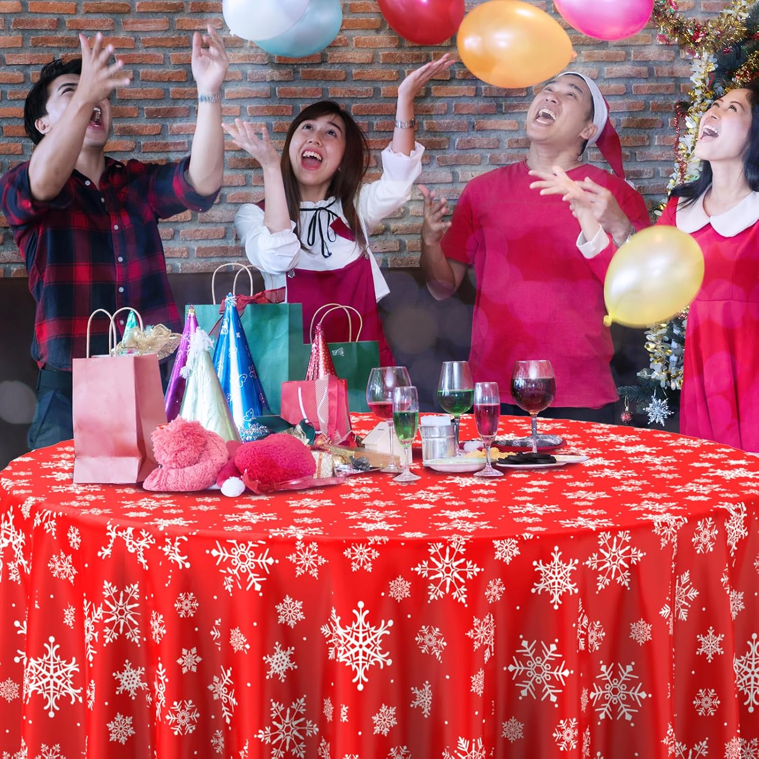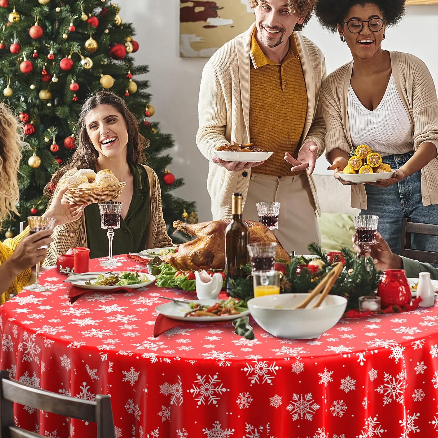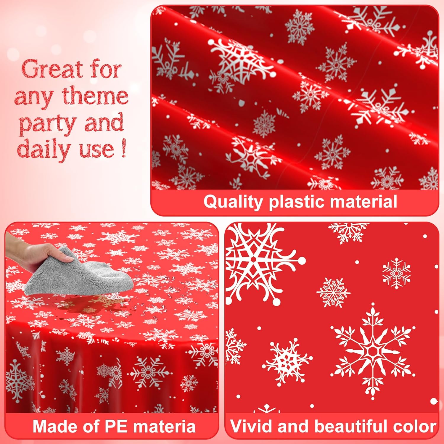 - Extra large size: these red snowflake Christmas party tablecloth measures approx. 84 inch, which fits for various-sized tables that can accommodate 8-10 people, Itโs large enough for your to hold a winter holiday and Christmas theme party with your family and friends to share happiness