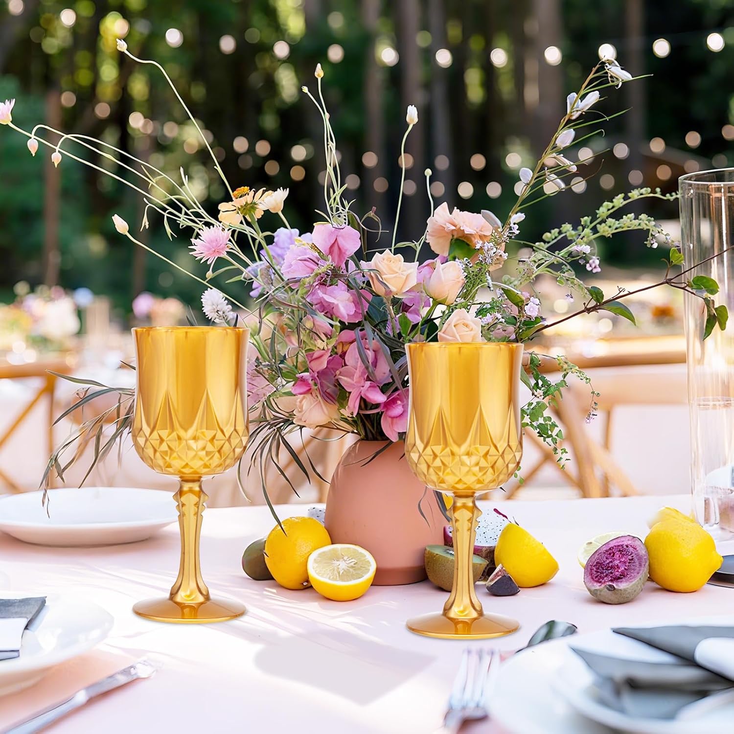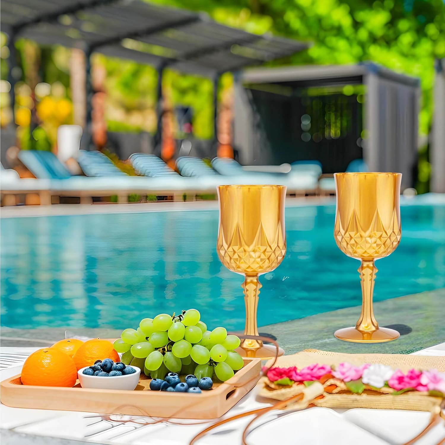 - Vibrant Solid Color Plastic Goblets: Unlike ordinary transparent or sheer-colored plastic wine glasses, our plastic vintage wine glasses drinking glasses feature rich, true solid colors that will not faded or peeled. Plastic goblets with classic diamond - pattern texture show the elegance of vintage crystal.Whether placed under sunlight or party lights, the unbreakable wedding glassware will make your drinks and dining table look more distinctive and stylish.