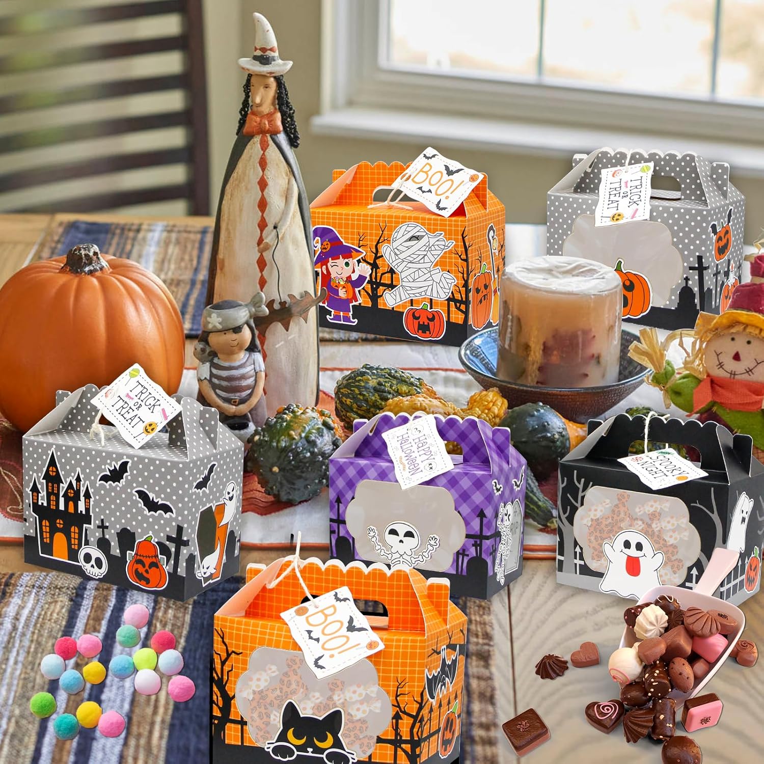- 【Perfect for Party Favors】Hand out these Halloween treat boxes as party favors to delight your guests. They are an excellent way to distribute homemade or store-bought goodies, ensuring everyone leaves with a memorable and delicious token of your event. Their eye-catching designs and practical use make them a hit at any gathering.