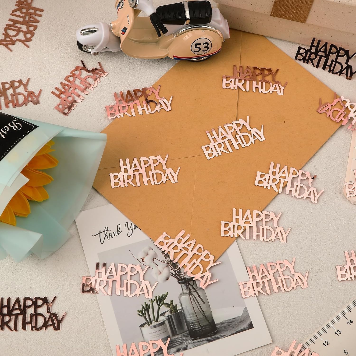 • Reliable Material: Birthday table decorations are made of good-quality materials, which are small in size, light in weight, have good luster and texture, glitter under light, are not easy to fade or deform, and can maintain beauty for a long time