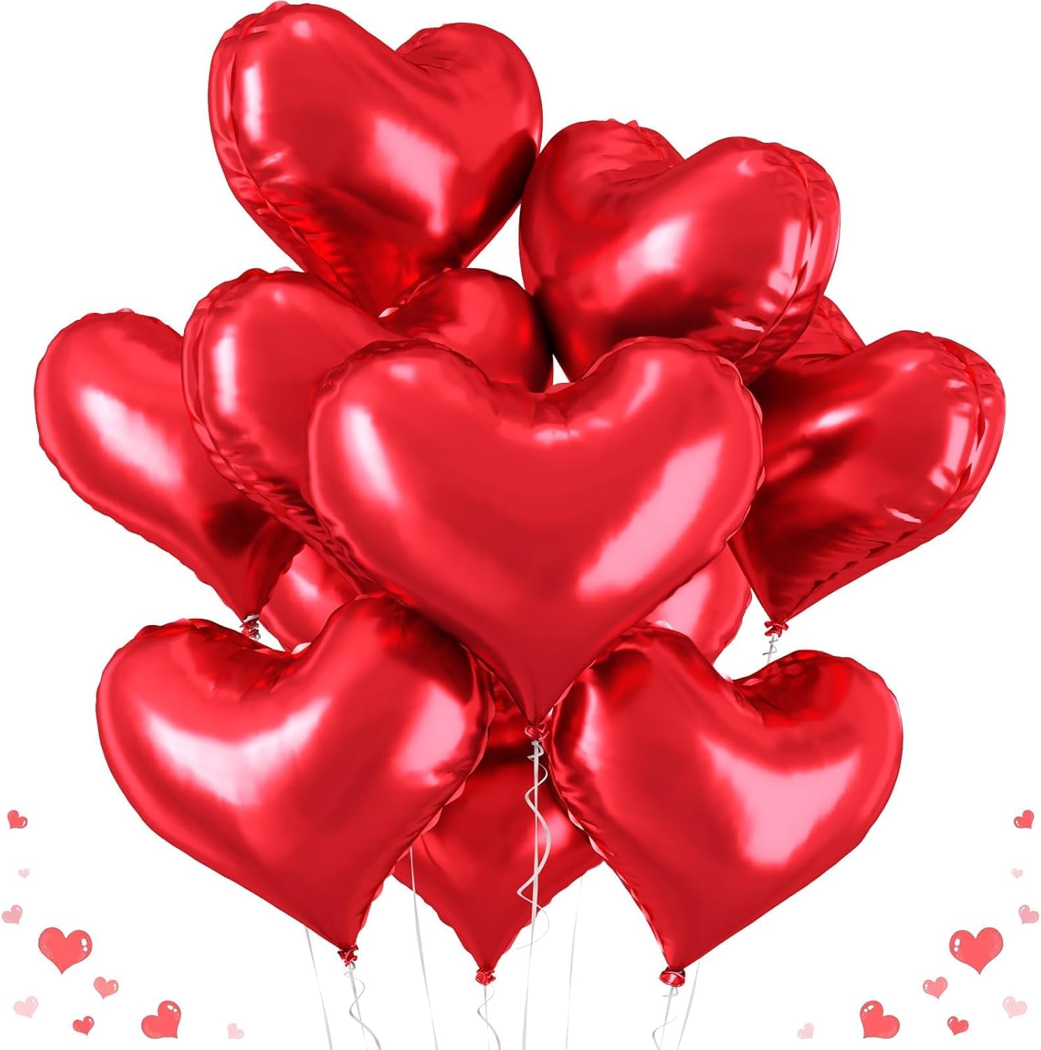 - 20 Inches Heart Balloons - Package contains 10 pcs red heart balloons, 1pc straw and 1pc ribbon.The red heart shaped balloons are ideal for any party. 20 inch is big and special enough to decorate your party and create a sweet and warm atmosphere!
