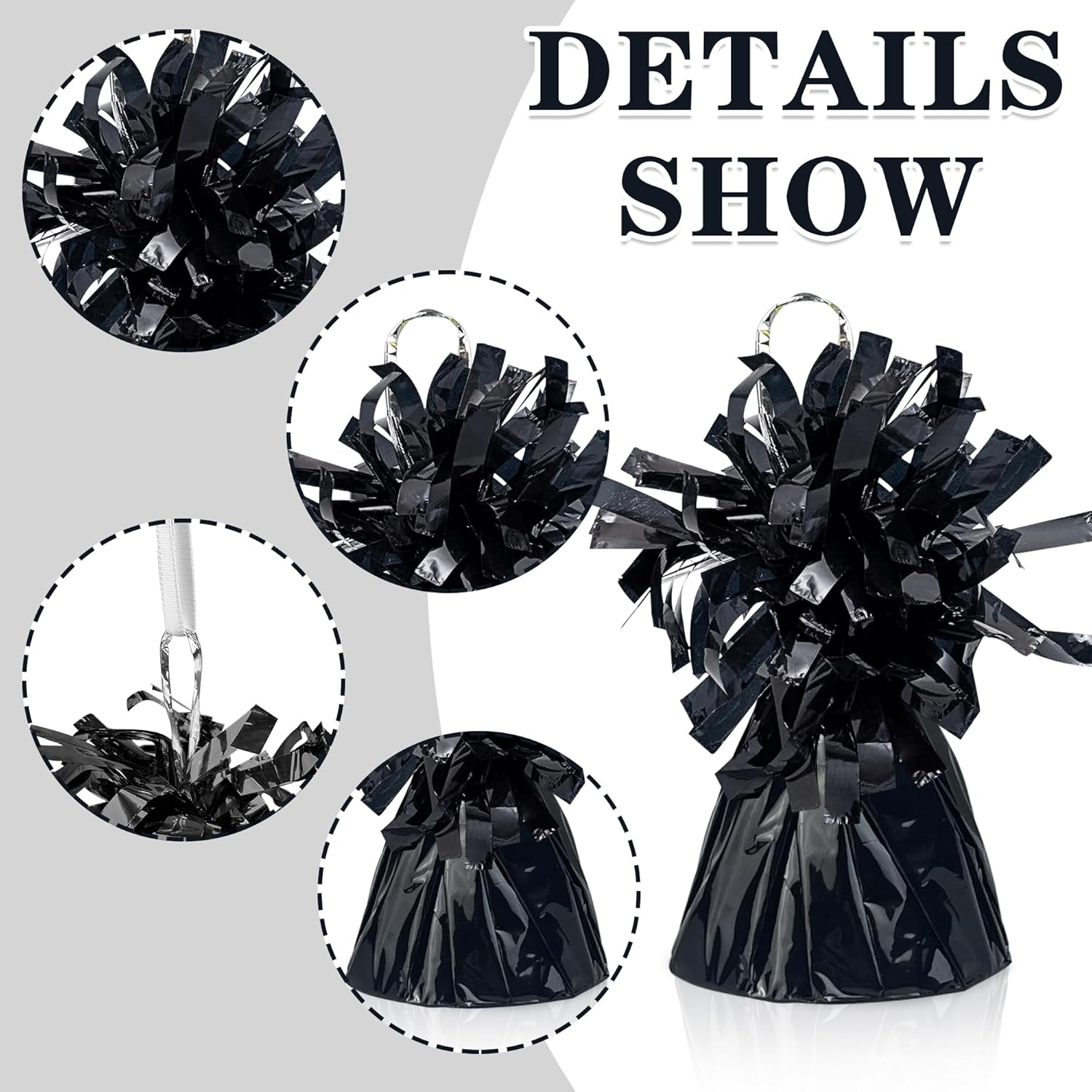 16 PCS Metallic Wrapped Balloon Weights Black Heavy Balloon Weight for Balloons Birthday Party Table Centerpiece Decorations (Black)