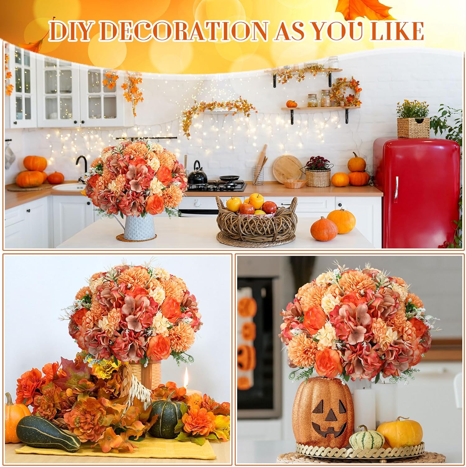 - Attractive Appearance: the fake flowers bouquet is shaped with bright orange peonies, embellished with green leaves, vivid and beautiful, designed with 7 flower heads as a bundle, including hydrangea, peony and more, bushy and vibrant, which will be favored by most people