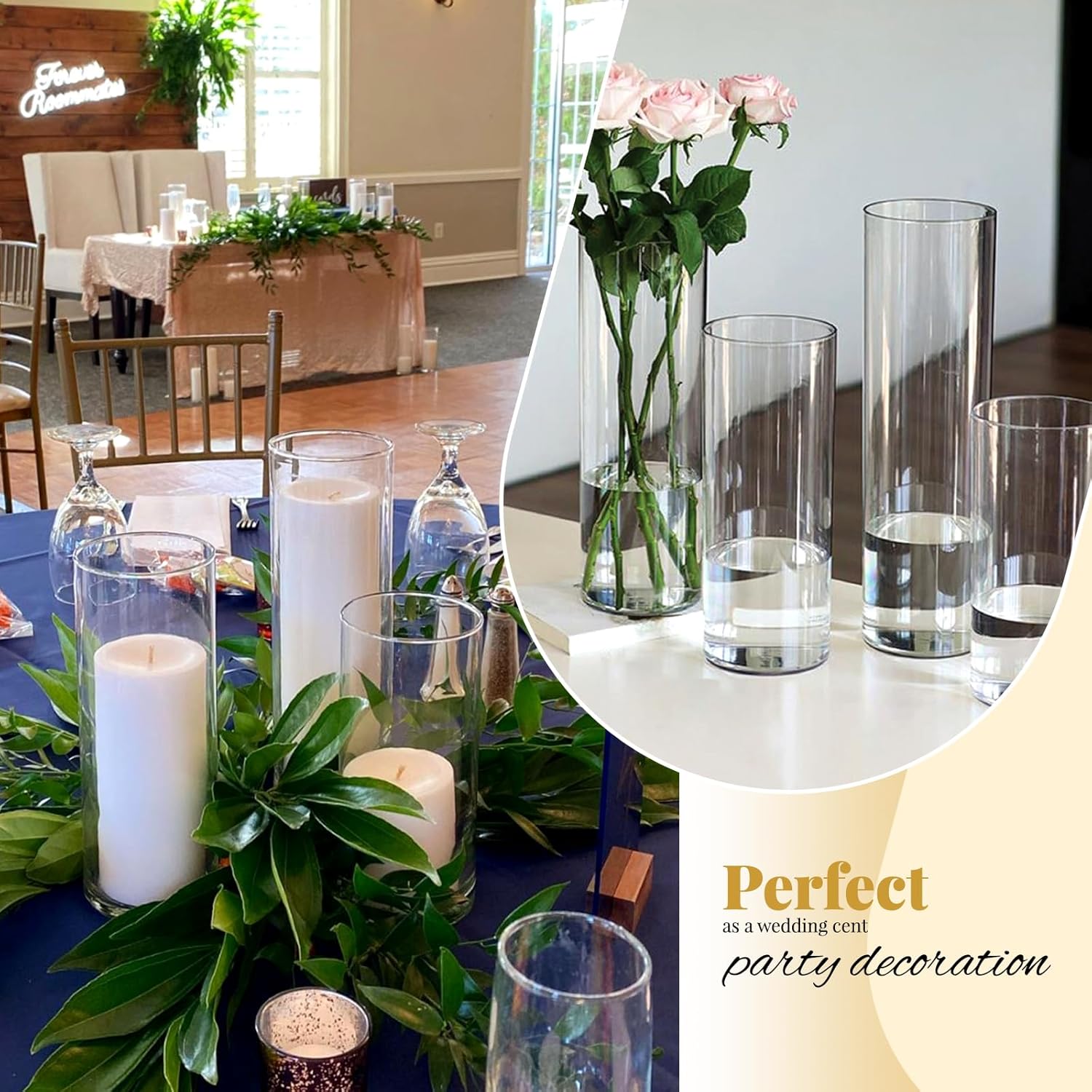- ✅ Classic Cylinder Vase: This vase set contains 12 pack clear cylinder vases, the height is about 8 inch and the diameter is about 3.35 inch. Our glass vases are available in sizes from 3.35*4" to 3.35*16", ideal for various flower vases, vases for centerpieces, and candle holders. Its versatile uses makes it perfect for creating elegant centerpiece table decorations.