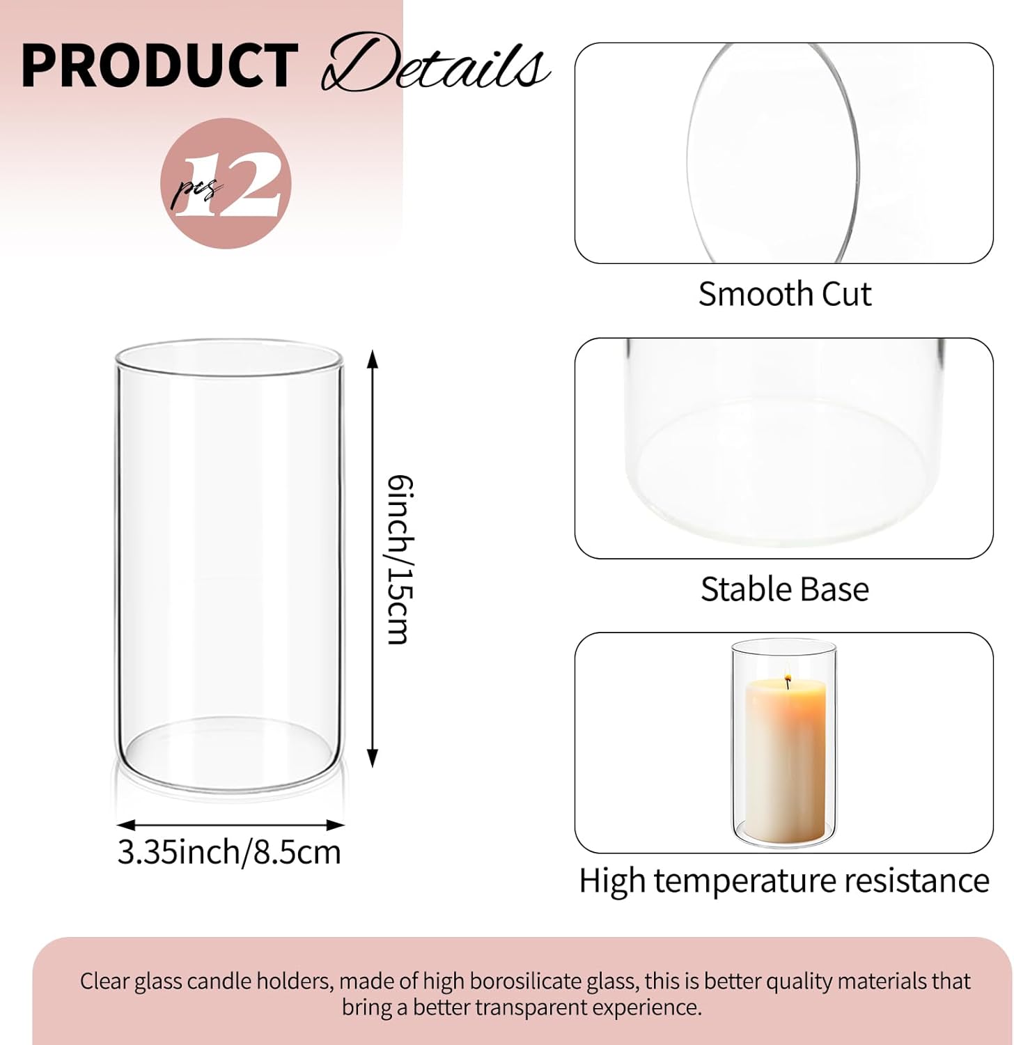- ✅ Classic Cylinder Vase: This vase set contains 12 pack clear cylinder vases, the height is about 6 inch and the diameter is about 3.35 inch. Our glass vases are available in sizes from 3.35*4" to 3.35*16", ideal for various flower vases, vases for centerpieces, and candle holders. Its versatile uses makes it perfect for creating elegant centerpiece table decorations.