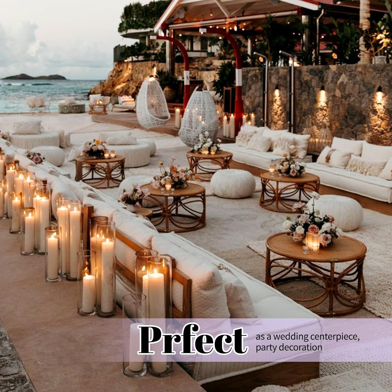 - ✅ Premium High-borosilicate Glass: Crafted from food-grade, heat-resistant borosilicate glass, our vases for centerpieces ensures exceptional clarity and durability. Designed with a solid base and smooth, polished rim, this flower vase provides stability and safety during use. This sturdy material can withstand greater temperature changes than regular glass. Perfect for use as a hurricane floating candle holder or for pillar candle holder.