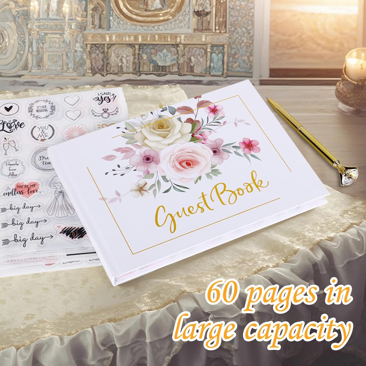 - Package Includes: You will receive 1 wedding guest book,and a golden diamond pen,4 wedding stickers (with rich and colorful sticker patterns)can be used to stick photos to your guestbook or for decoration,a keepsake box to preserve your memories.