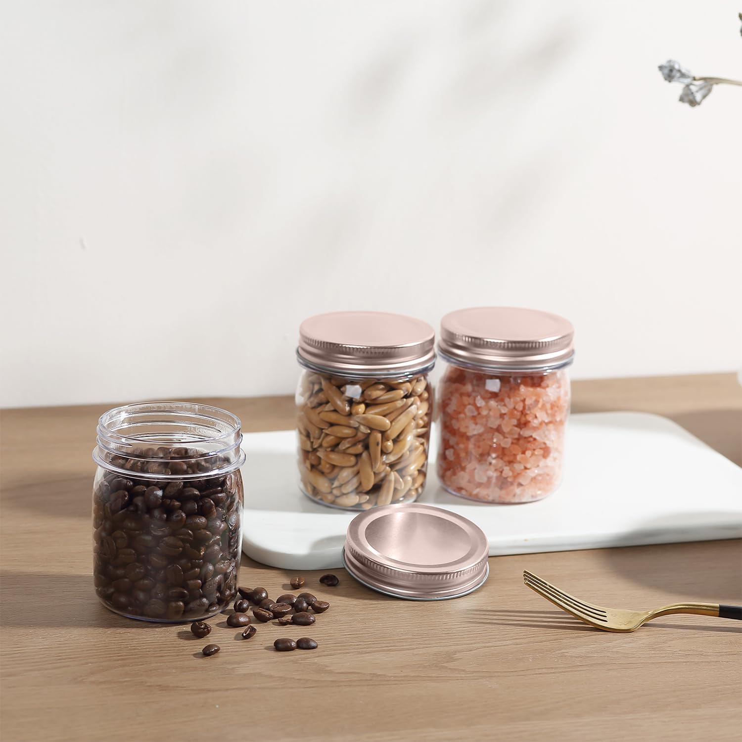 novelinks 8 oz Clear Plastic Jars with Screw-On Lids - BPA-Free Refillable Storage Containers for Slime, Spices, Crafts, Kitchen & Home Organization (48 Pack,Rose Gold)