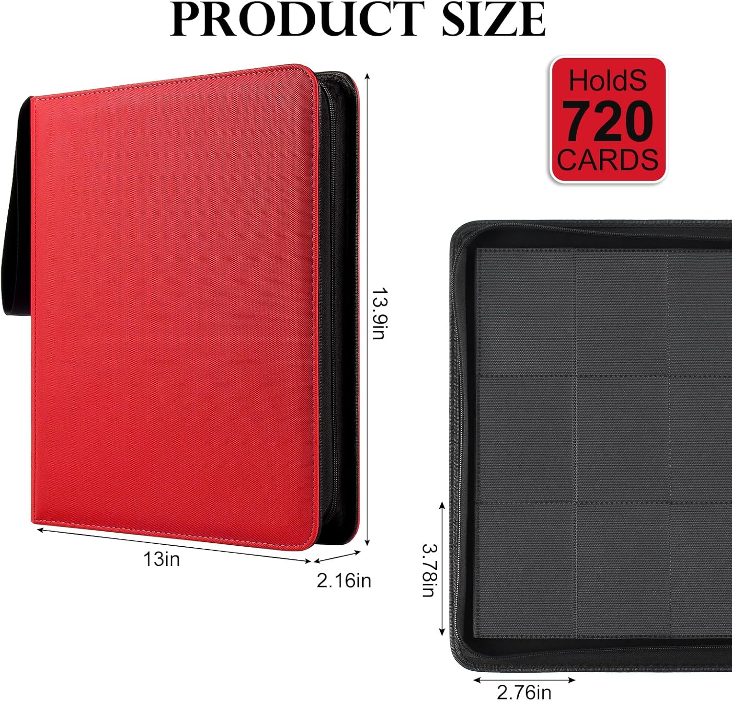 - Large Capacity - With 30 double-sided pages and 12 pockets per page, this trading card binder can hold up to 720 cards. Provides plenty of space for you to organize all your trading cards.