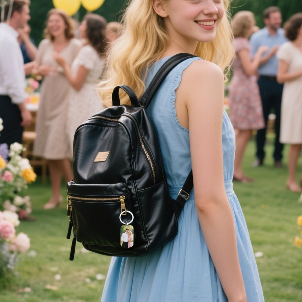 - This scratch-resistant, double-sided UV-coated metal keyring carries eternal memories in a lightweight form. Perfect with keys, wallets, or backpacks, it adds timeless style.