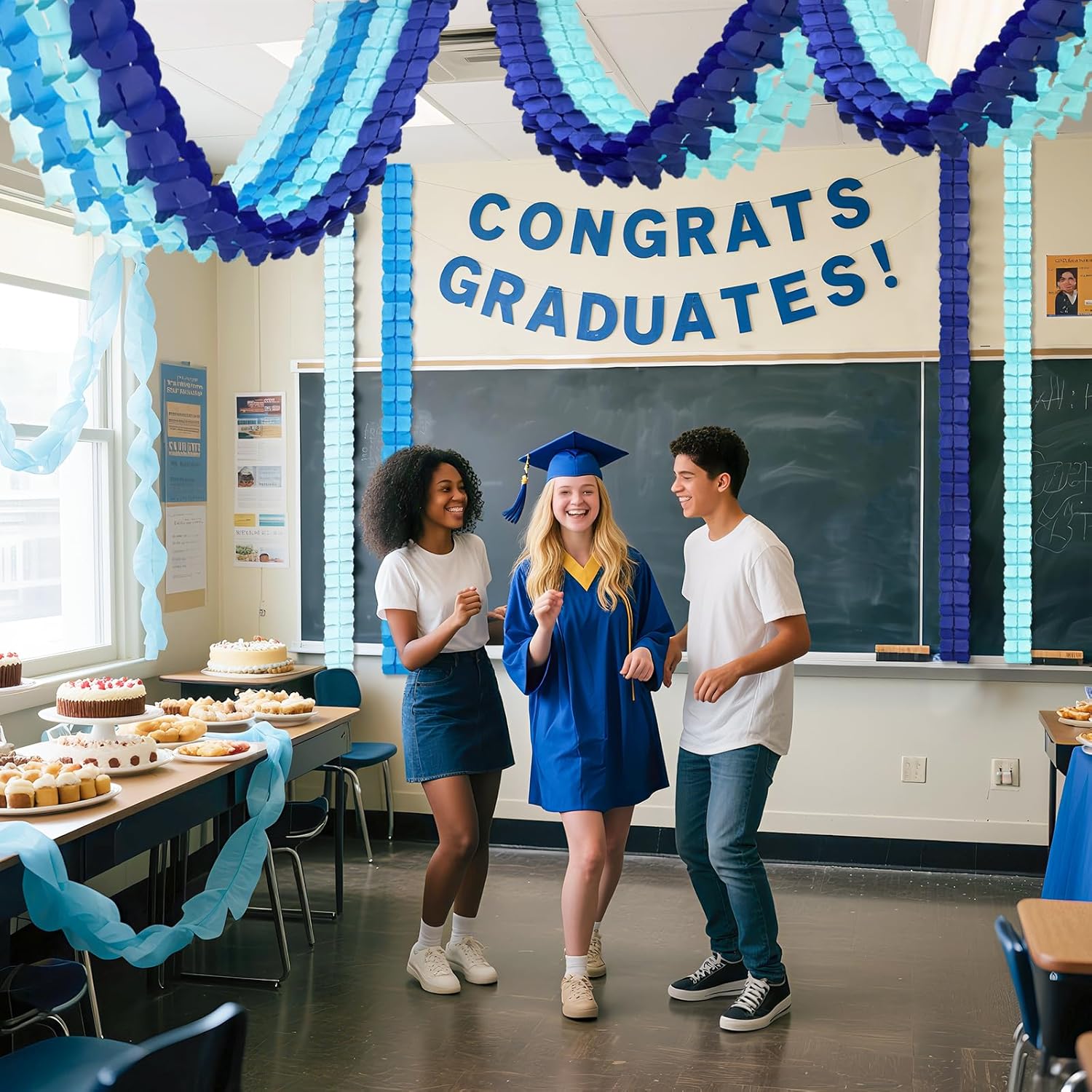 - 【Easy to assemble and can be reused】: Our blue streamer backdrop are easy to work with. Just open the package, pull the rope on both sides of the garland, then hang the garland directly. You don't need to diy them, which can really save your time and energy. (If there are two people working together to install, it will save more time.) They can be reusable if you don’t tape or glue them together. They fold up so easily.