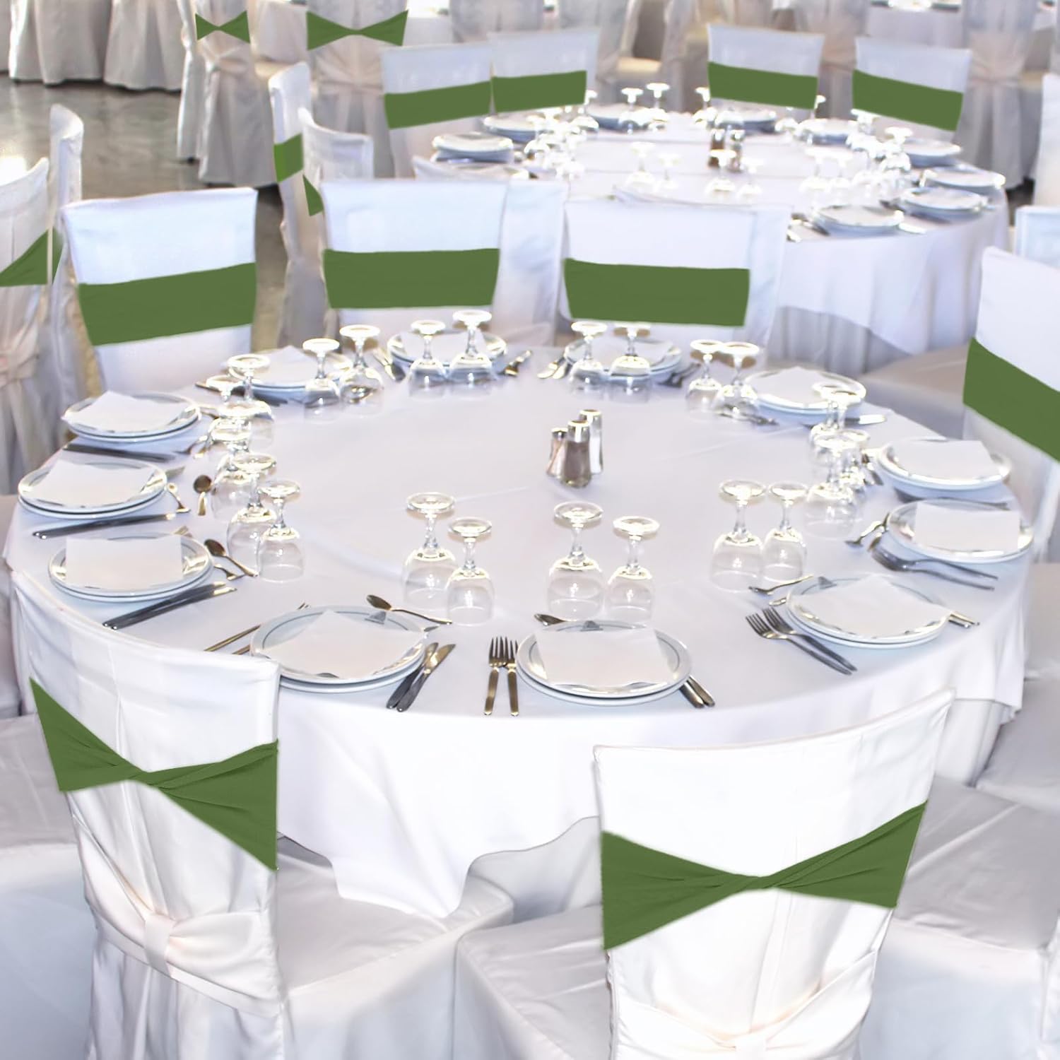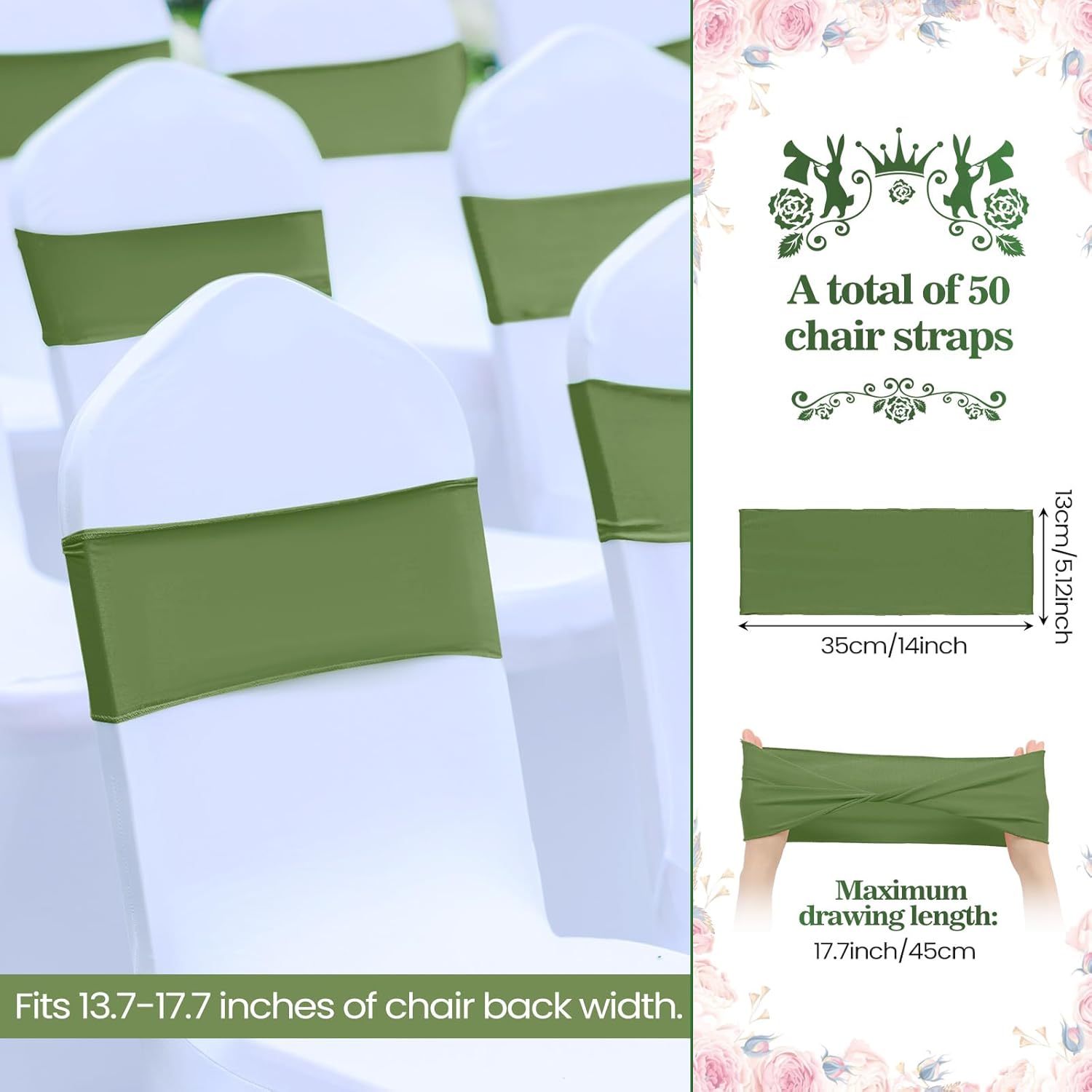 Kinlop 50 Pcs Spandex Chair Sashes Bows Chair Bands Slider Sashes for Covers Elastic Bands Ties Without Buckle Decorations for Wedding Party Events Ceremony Birthday (Moss Green)