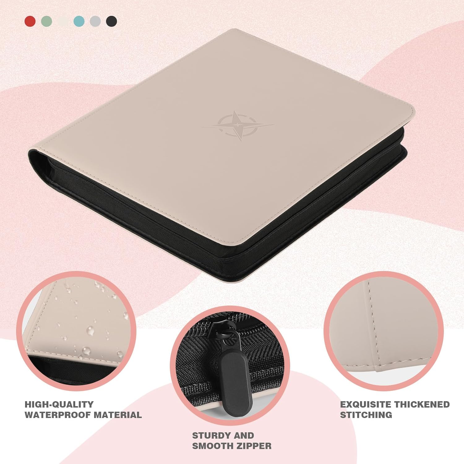 20-Pocket Card Binder, Trading Card Binder Holds 2000 Cards, Premium Zippered Trading Card Album Compatible with TCG, Game & Sports Cards (Ivory White)