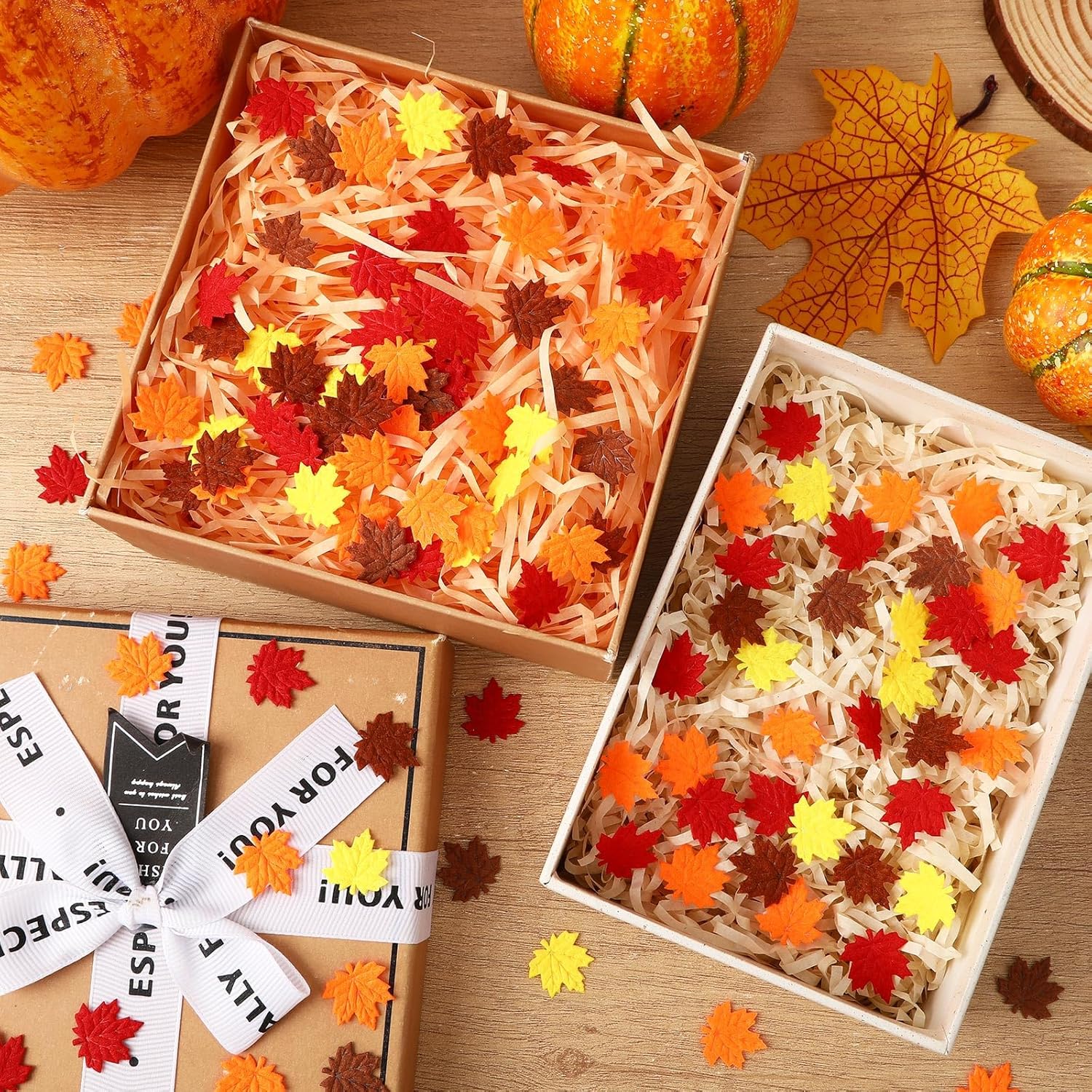 • Premium Material: Made from soft, reliable felt, these maple leaves confetti are gentle to the touch,can withstand wear and tear. The vibrant colors—red, dark brown, light brown, orange, and yellow,stay bright over time, ensuring long term use
