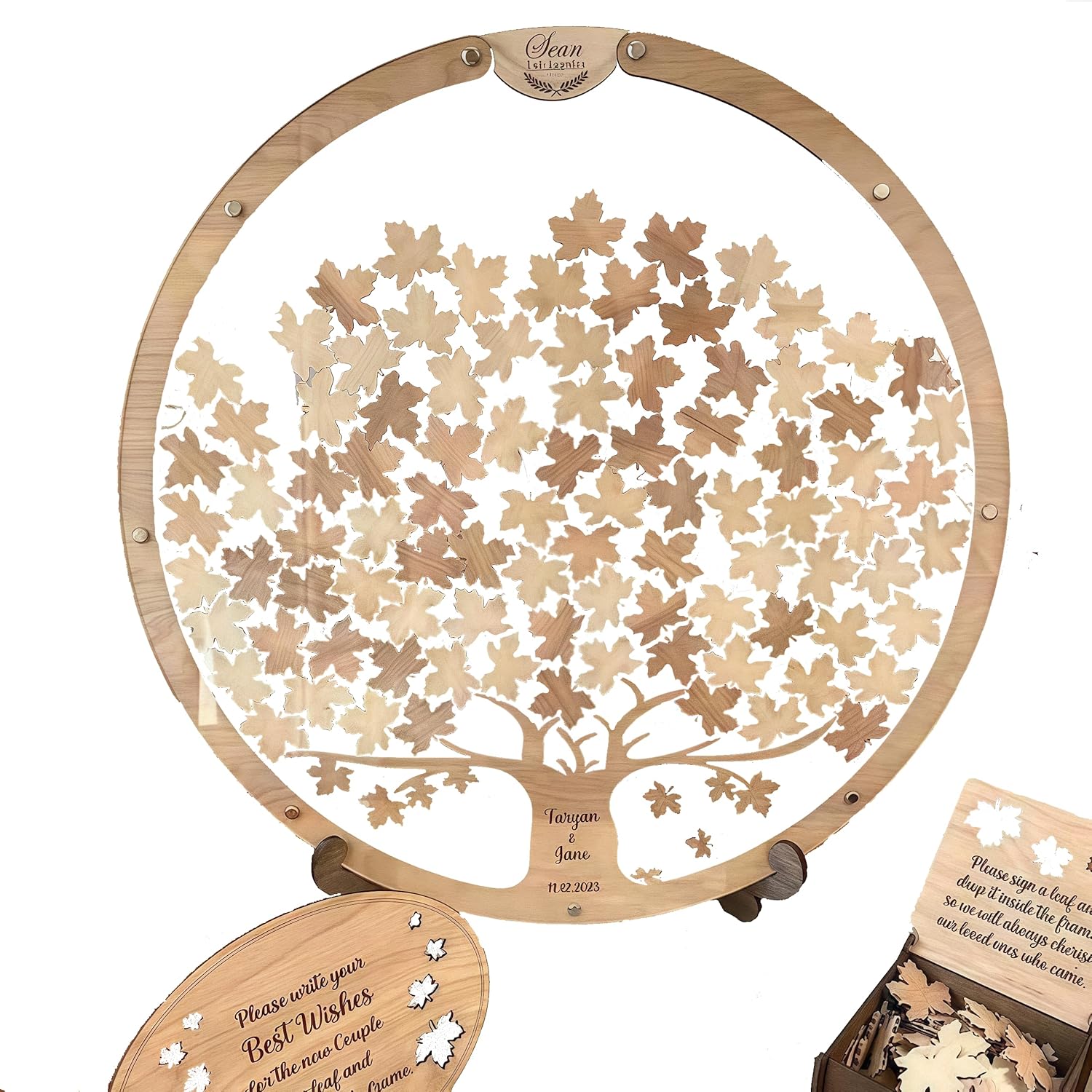 Personalized Wedding Guest Book Alternative - Wooden Leaf Guest Book Wedding, Personalized Wedding Reception, Custom Wooden GuestBook, Stereoscopic Tree Guest Book