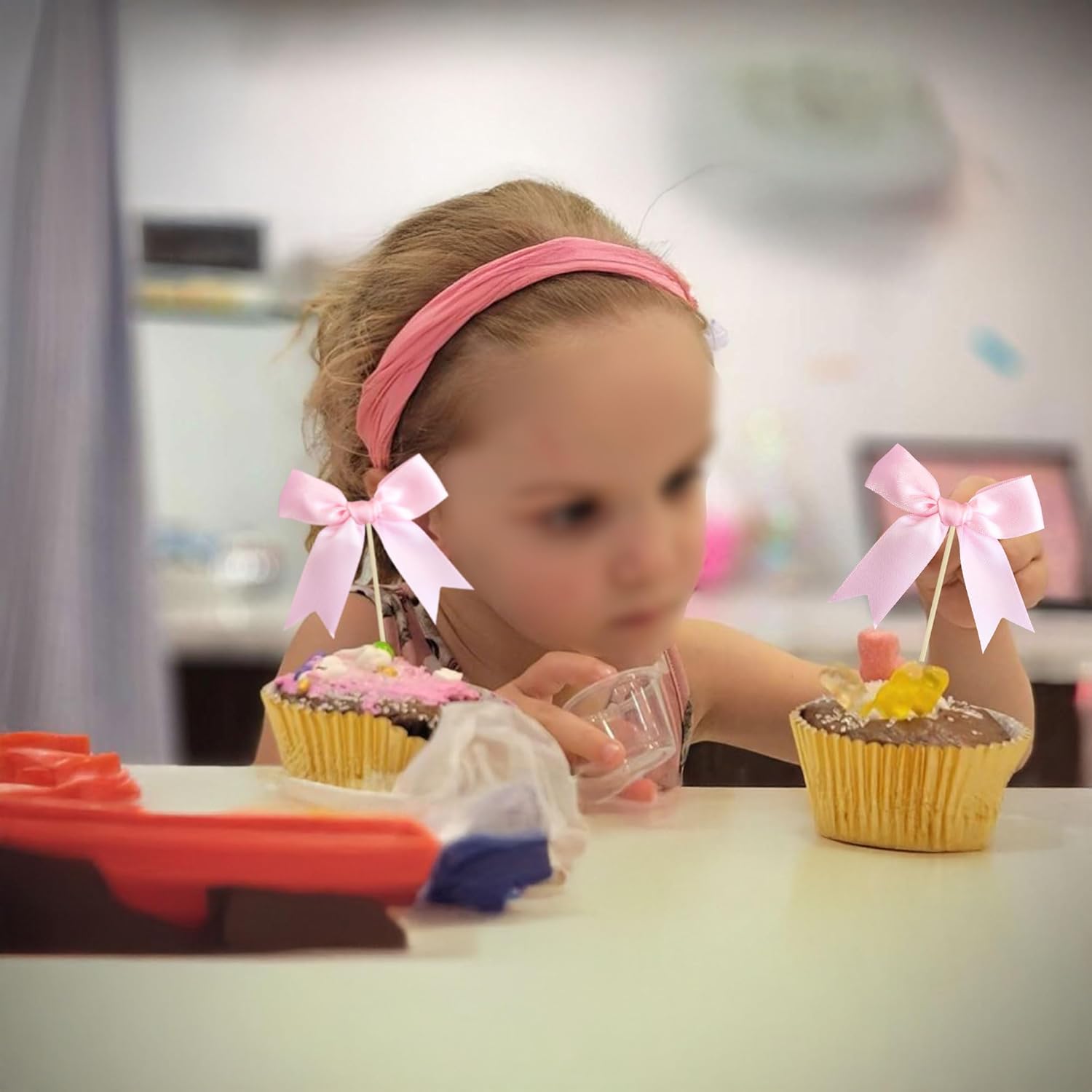 - 【NO DIY Required】: Bow Cupcake Toppers can put in the cake directly! Bow Cupcake Toppers save your time and super easy to use. You can easily dress up your cakes, yes! but don't stop there, put them into desserts, cookies, fruit pieces, appetizers, muffins and so much more!