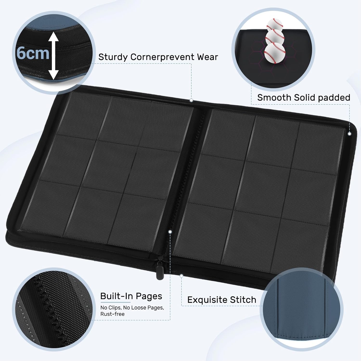 - Side Loading & Ultra-Clear Pages: Featuring archival-grade acid-free & non-PVC materials, this side-loading card binder prevents fading and card stickiness while its ultra-clear anti-scratch sleeves showcase holofoil details and securely lock cards in place—ideal for prolonged storage and collection display.