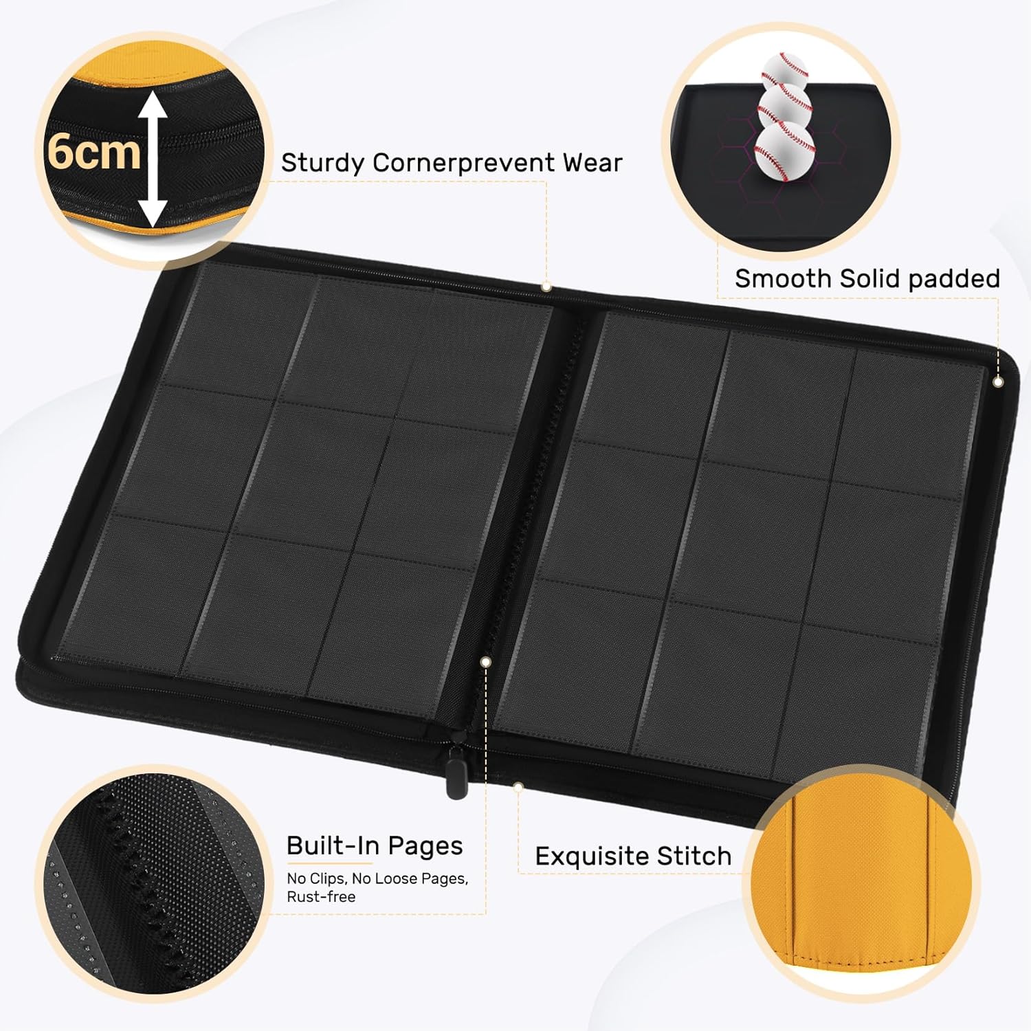 - Maximum Protection: Designed with thickly padded, ultra rigid exterior case to prevent card bending, and durable zipper for further protection from dust and dirt. This water-resistant card binder with premium PU textured faux leather offers trusted durability and superior security for your cards.