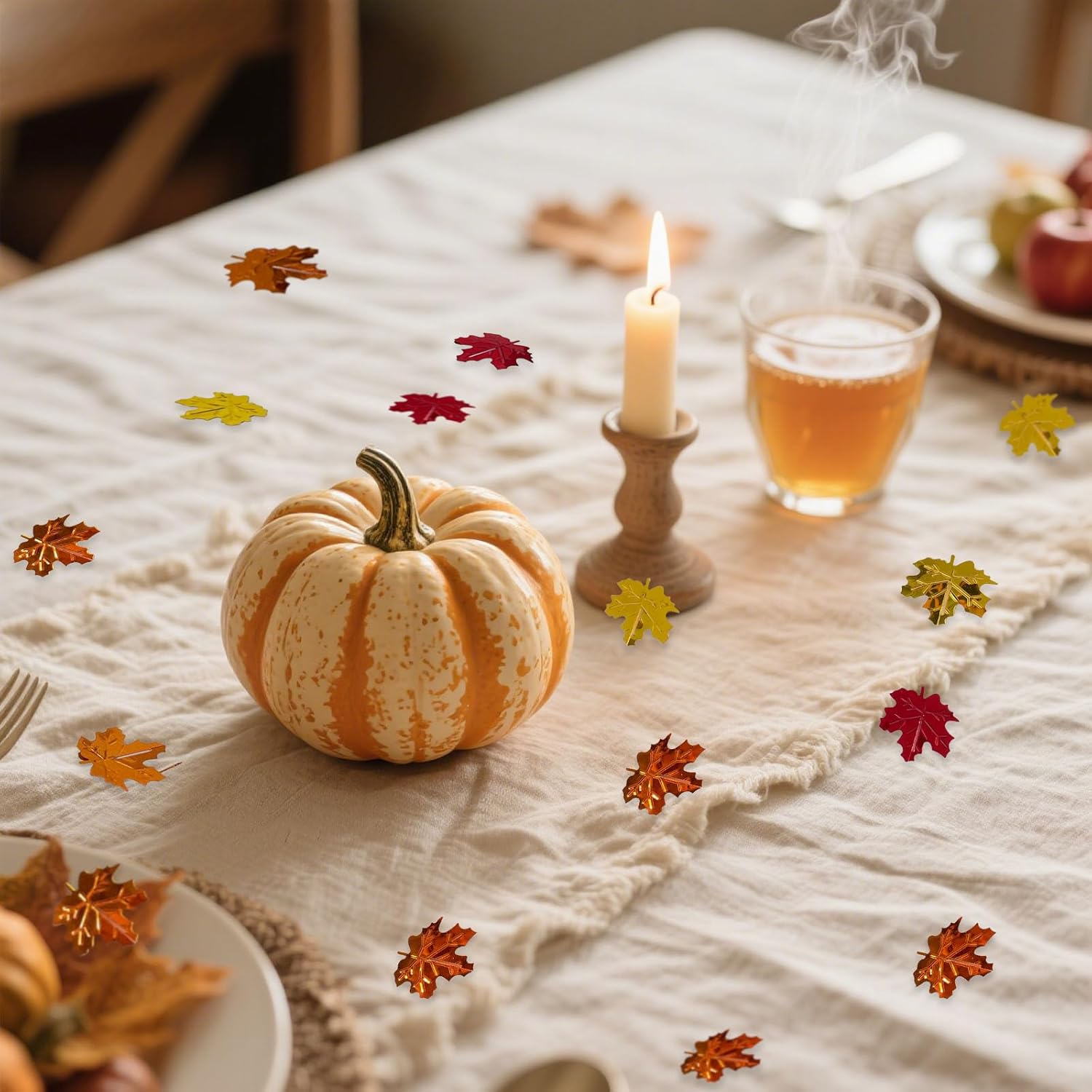 Fall Maple Leaf Confetti, Thanksgiving Metallic Foil Confetti Autumn Colors Party Decorations Leaves Sequins Table Scatter Centerpiece Sprinkles for Fall Party Supplies Decor