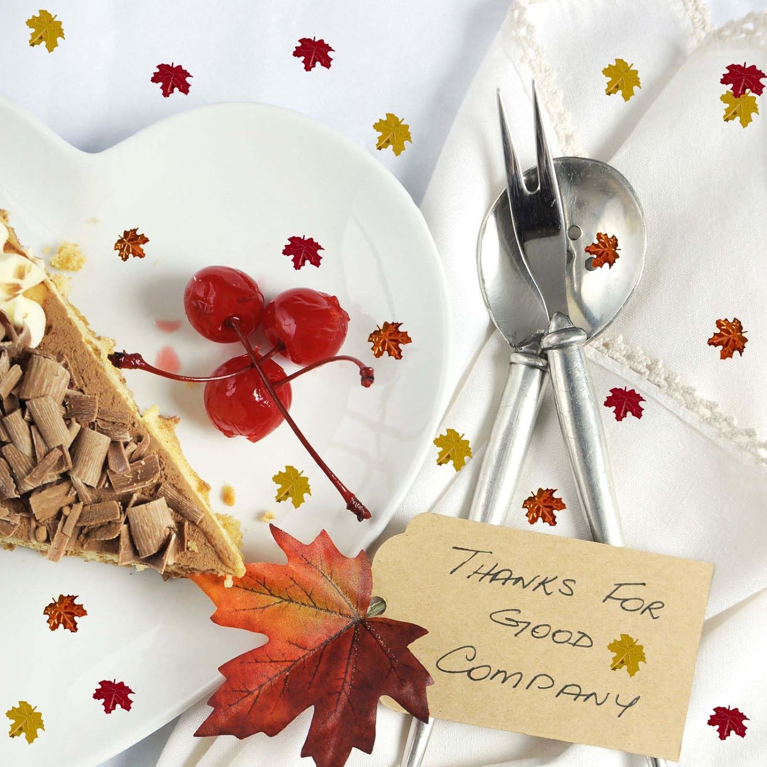 - Widely Used: Autumn leaves confetti are suitable for the decoration of various Thanksgiving parties. Use this maple leaves confetti as something in party invitations, envelopes and candy bags to decorate your party table, cakes, plates, central decorations or scatter on your cake table, so that your guests will like fall confetti for table