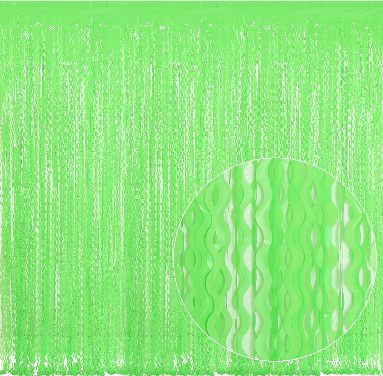 - 【LATEST Shiny Surface +Wavy Shape Tinsel Backdrop】The green foil curtain backdrop is made of aluminium foil with shiny surface +wavy shape, good for adding sparkle as decorations for parties