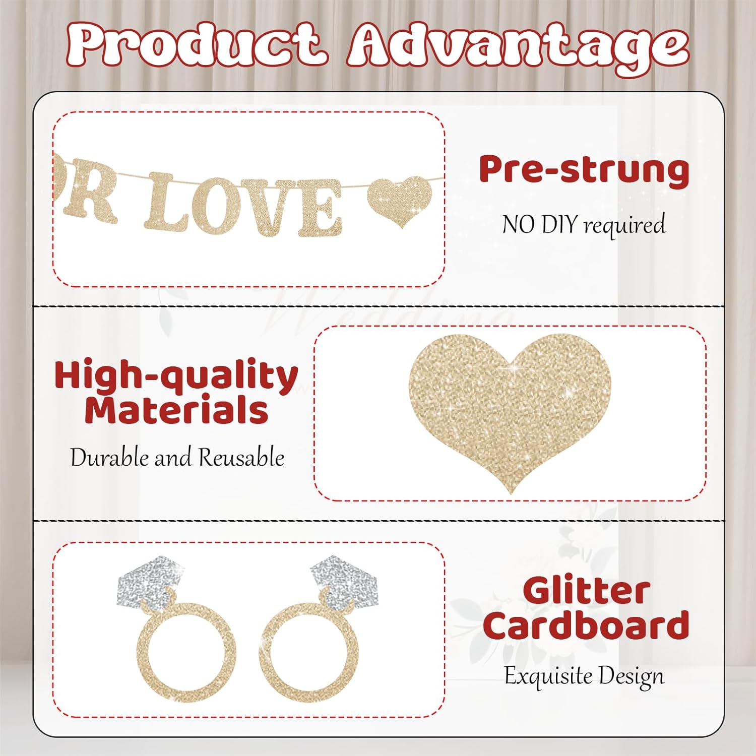 - [Grand Size & Complete Kit] This 118-inch banner features two glittering diamond rings (3.54" x 7.87") and bold "For Love I Do" lettering. Includes a 3-meter rope for instant hanging—perfect for bachelorette party decorations​and bridal shower decorations.