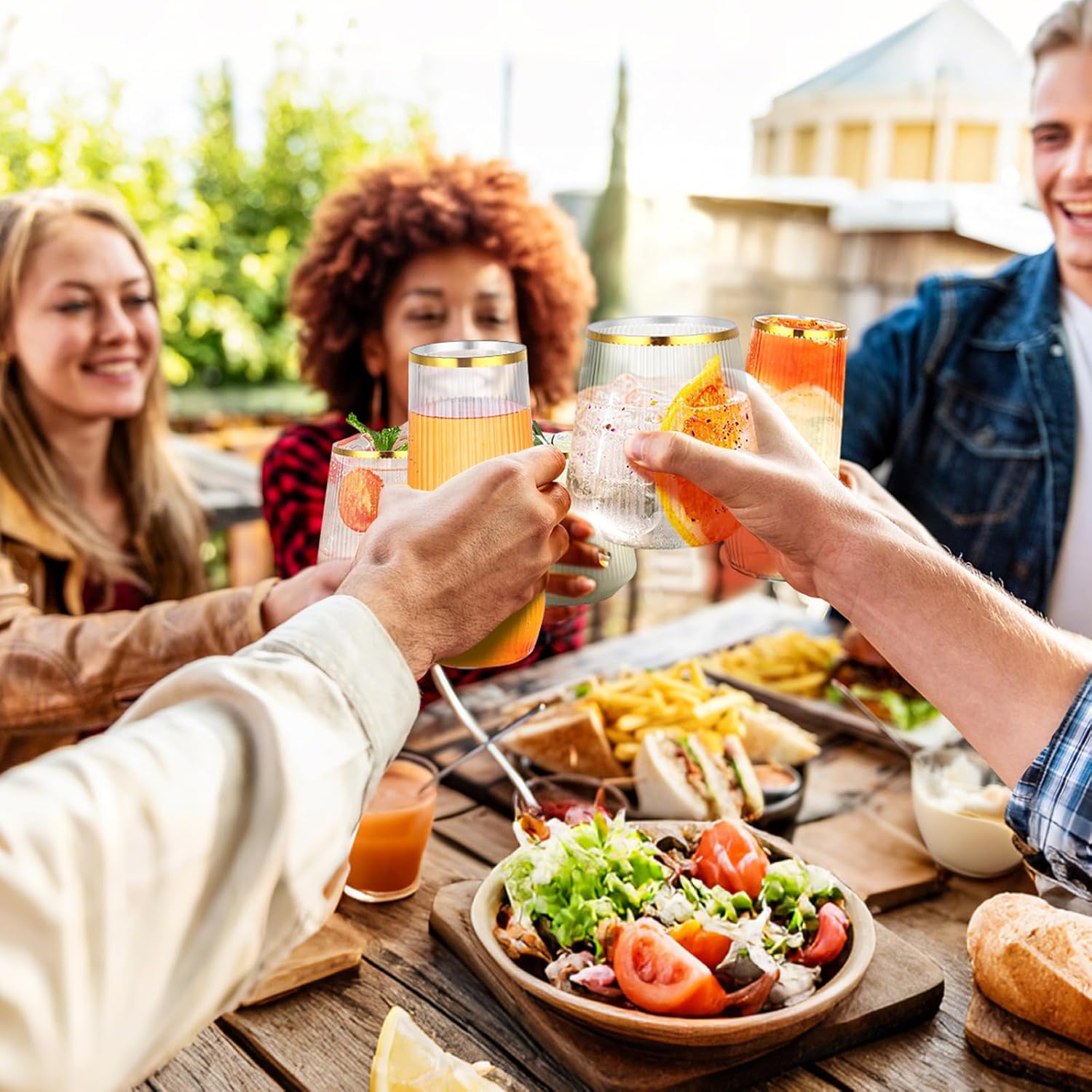 - 【Versatile Usage】These plastic stemless wine glasses bulk are perfect for a wide range of beverages, including champagne, wine, juice, whiskey, drinks, cocktails, water, various mixed drinks and more. Ideal for indoor and outdoor functions, home, office, bars, weddings, catering, barbecues, birthday parties