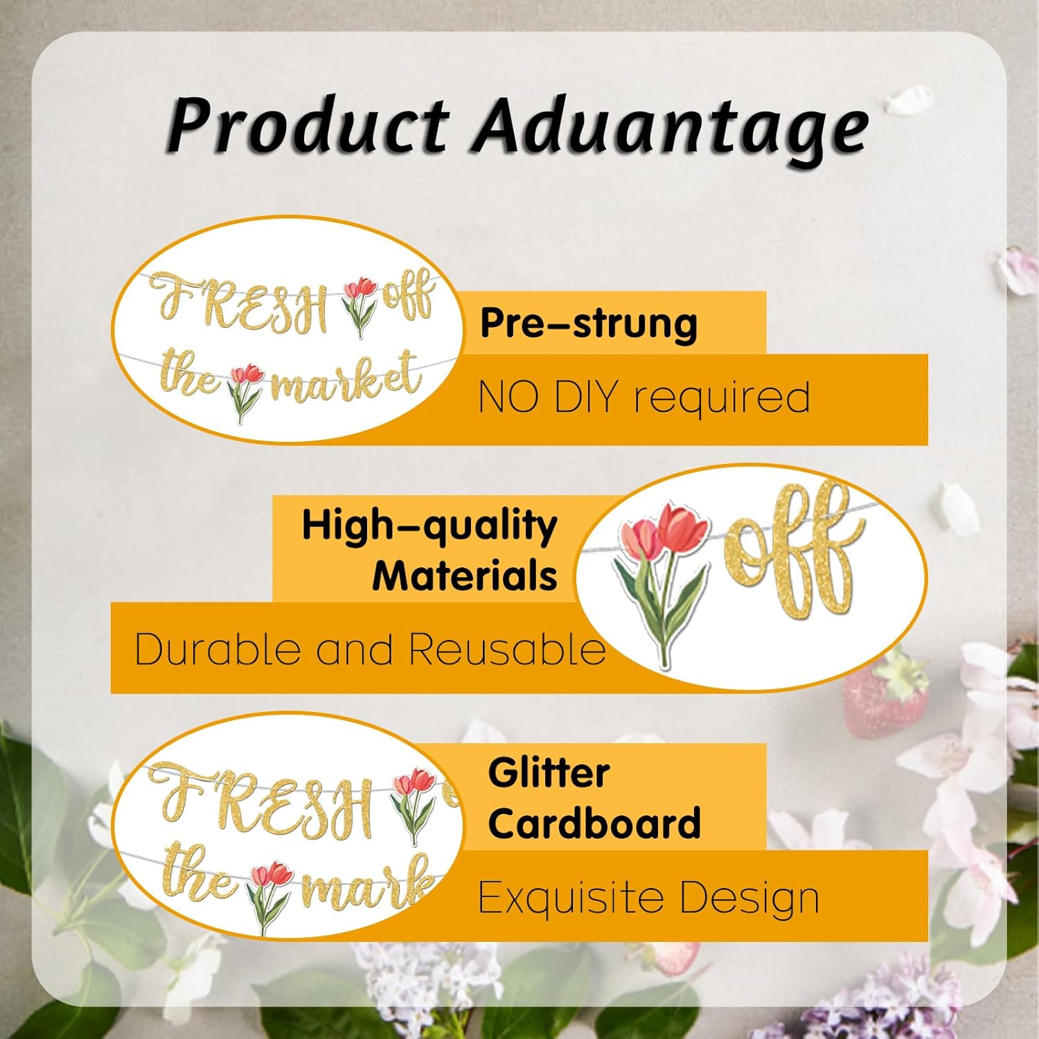 - Package Including: You will get glitter gold "Fresh Off The Market" banner. it will be getting a big hit from your guests and families in your bachelorette party.
