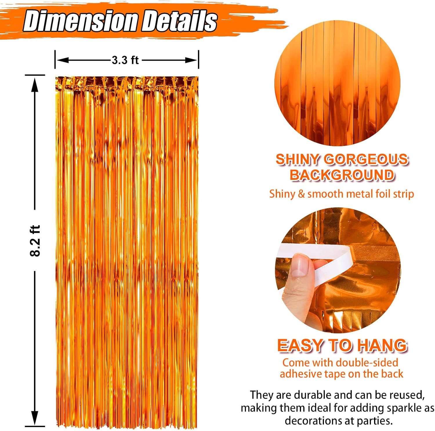 2 Pack Orange Foil Fringe Curtains Streamers Party Decorations 3.3 x 8.2 ft, Pink Tinsel Curtain Fringe Backdrop for Parties, Door Fringe Birthday Streamers, Barbie Backdrop Birthday Party Decorations