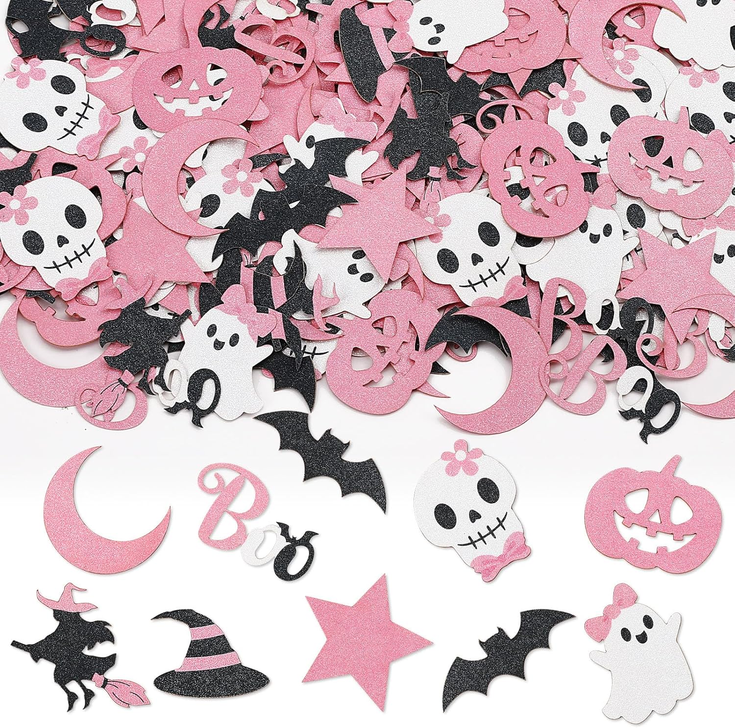- Pink Halloween Themed Design: Halloween confetti for table skillfully blends pink with classic Halloween elements, with soft colors and festive atmosphere, sweet and mysterious style and full of fashion sense. Whether decorated on the desktop or in other places, confetti Halloween is nice for table decoration, which can add a rich Halloween atmosphere to your party and will be deeply loved by guests at Halloween parties