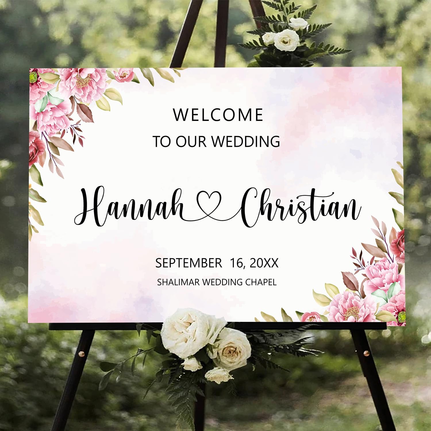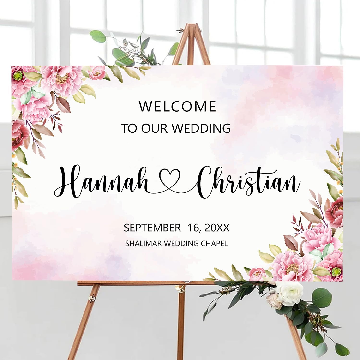 Ethereal Blush Wedding Welcome Sign Template, Editable Printable Modern Rose & Geranium Floral Sign for Ceremony or Reception, Wedding Decor Bundle