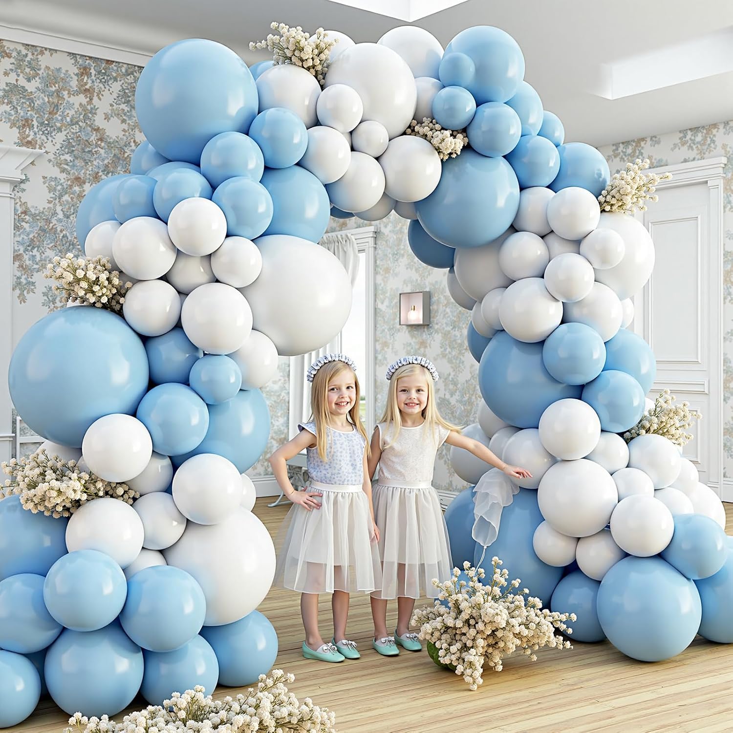 - PREMIUM MATERIAL: Blue and White Balloon Garland Arch Kit durable and not easy to burst, a variety of colors and sizes for you to choose, balloons are packaged by size separately, saving your time.blue and white balloons meet your different uses.
