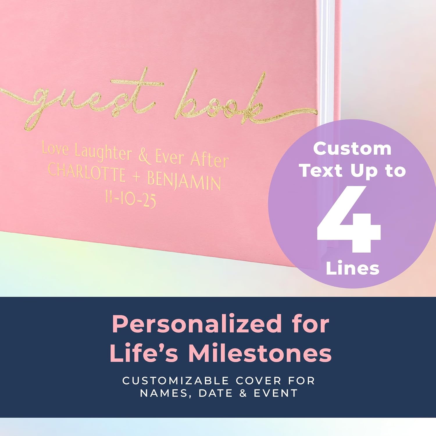 Promot Personalized Guestbook for Party (Pastel Pink) - 110 Lined Pages in Wood-Free Vegan Leather Hard Cover - Wedding Guest Book Sign in and Photos, Baby Shower, Birthday or Graduation