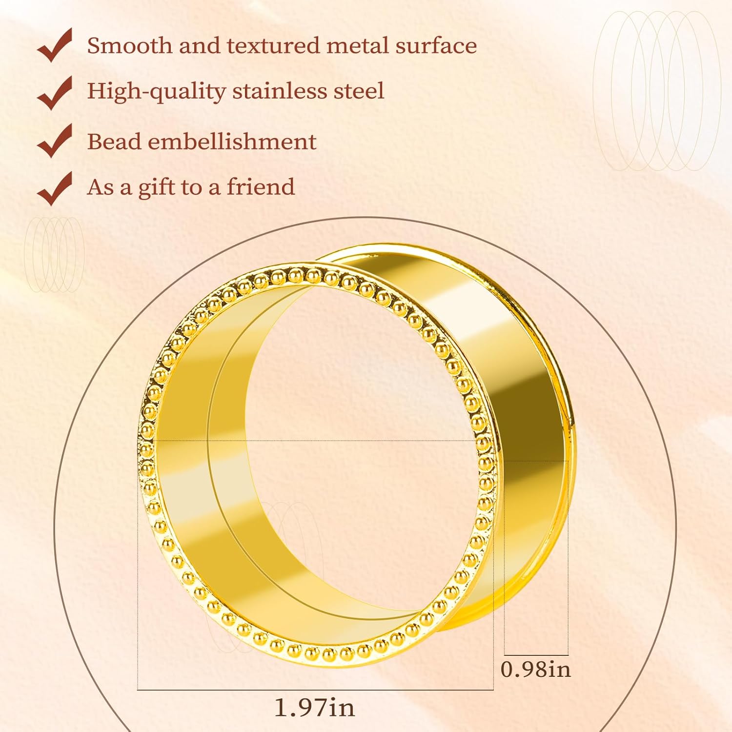 20 Pcs Stainless Steel Bead Side Napkin Rings Delicate Serviette Buckles (Gold)