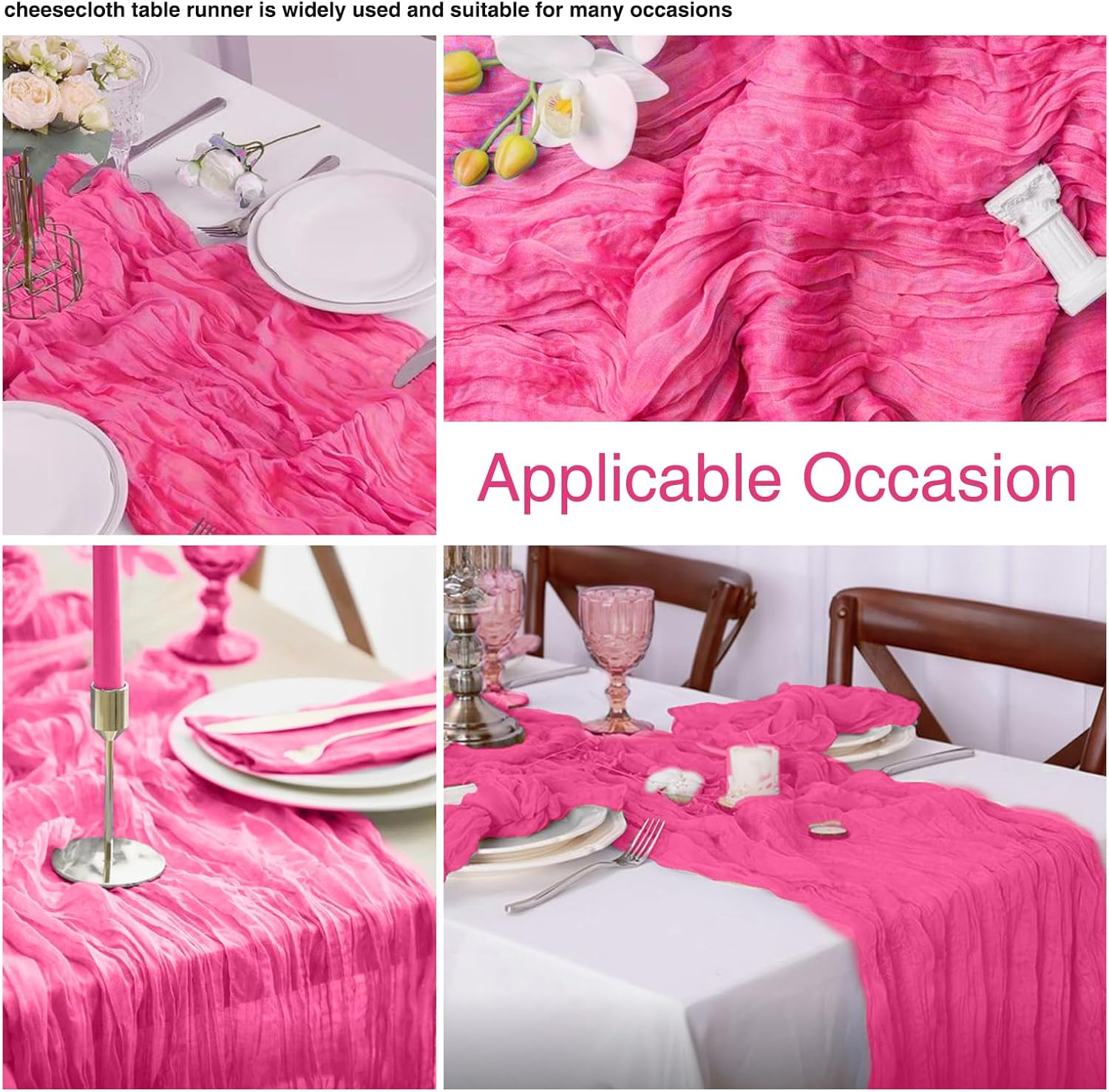12 Pack Hot Pink 10 Ft Cheesecloth Table Runner 20x120 Inch Boho Wrinkled Sheer Romantic Gauze Decor for Wedding, Bridal Shower, Birthday Party
