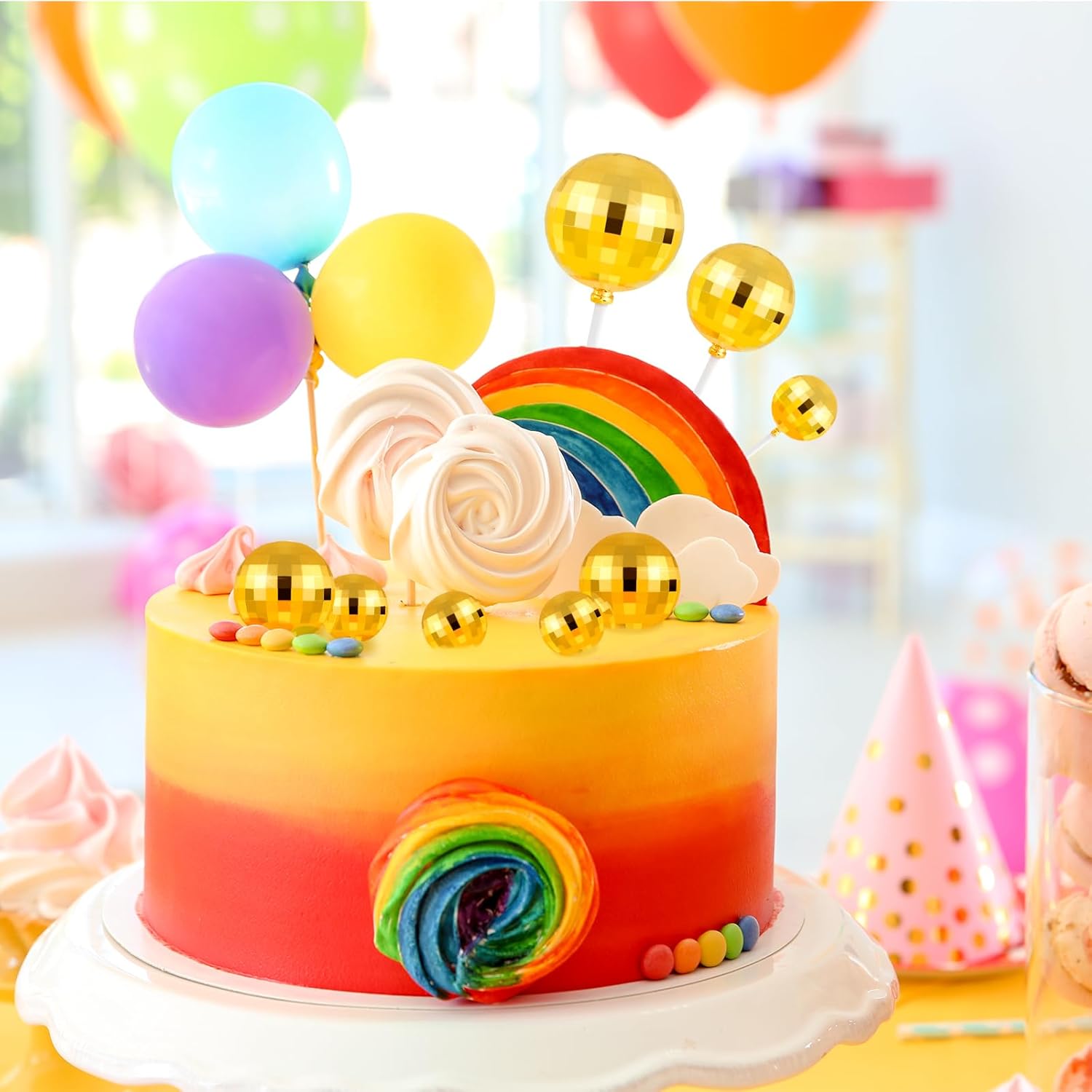 ASTARON 20 Pcs Disco Ball Cake Topper Decorations Sticks Gold Cake Balls Picks Toppers for Birthday Anniversary Disco Retired Theme Party Decorations