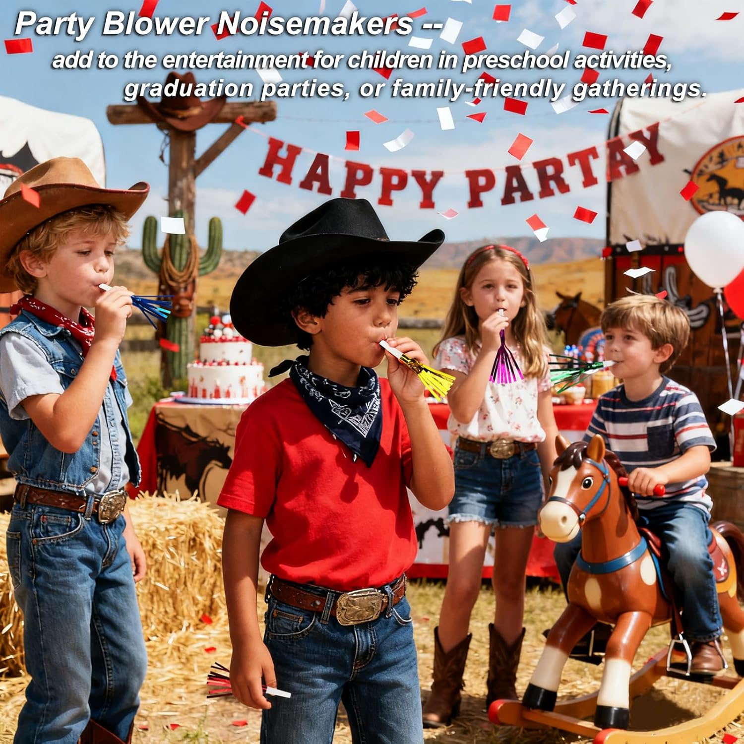 - WHAT YOU WILL GET--- 24pcs Vibrant Party Blowers – Colorful glitter & fringed noisemakers perfect for birthdays, graduations, New Year's Eve, and family gatherings. Fun, reusable, and joyful.