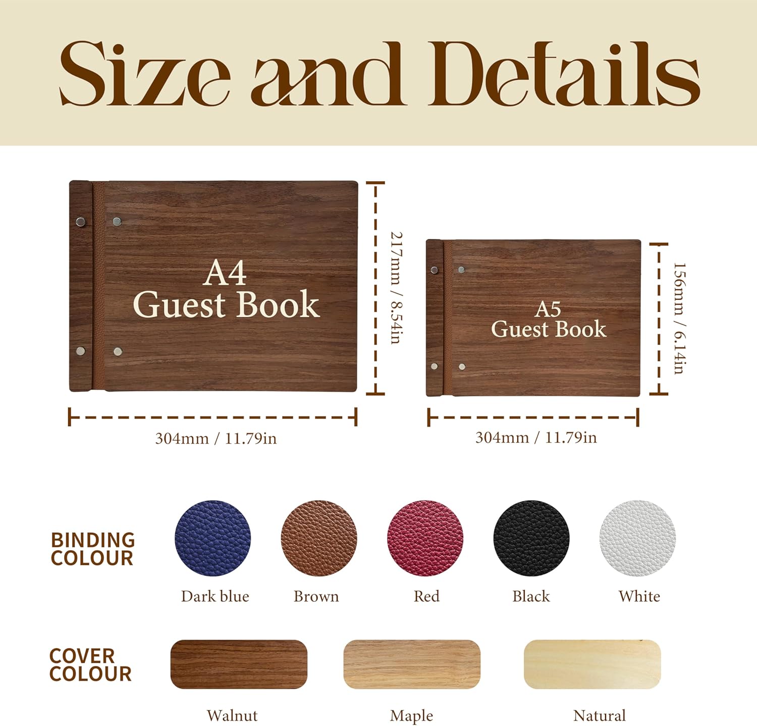 - Beautiful & High-Quality Cover - The Wooden Guestbook Cover is made of high quality genuine leather which can be freely matched with customization options. With a wood cover that is 3.5β4 millimetres thick and sturdy metal spiral binding, this sign-in book provides a flat and secure writing surface, ensuring an effortless experience for all your guests.