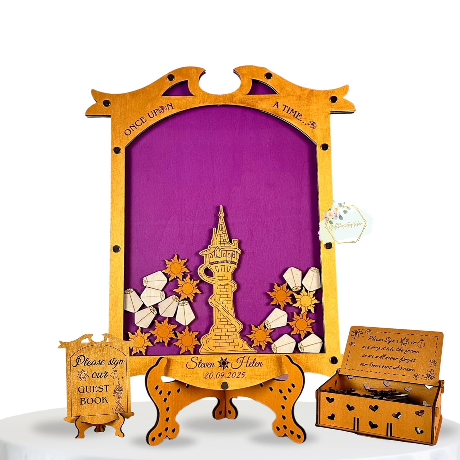 - π° Fairytale Guest Book Alternative β Inspired by Tangled, this wooden drop box lets guests leave signed tokens, creating a magical keepsake for your wedding.