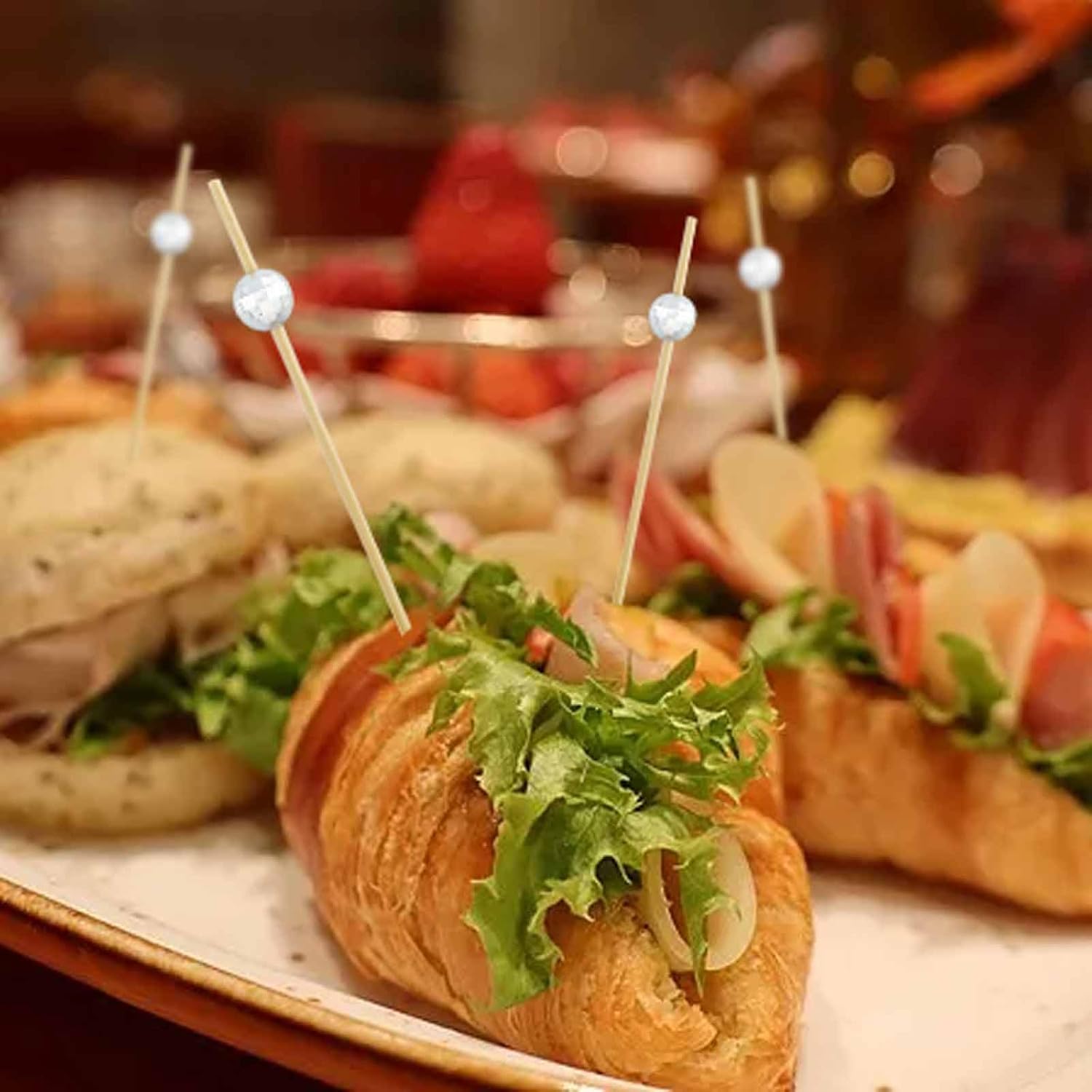 - [Safe materials] These toothpicks are made of bamboo. Bamboo is a renewable resource, non-toxic and harmless, and has no harm to the environment. It can be washed with water and used as a decoration for food.