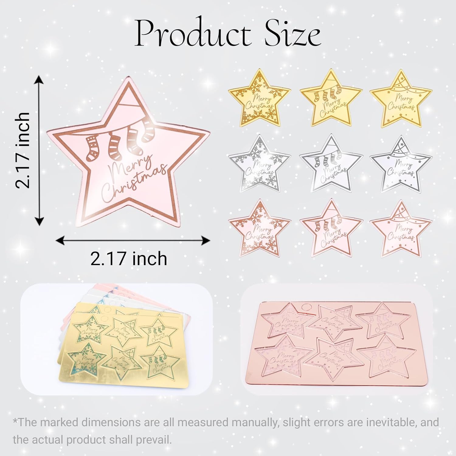 - 36 Pcs Merry Christmas Acrylic Cupcake Toppers Acrylic Mirror Star Xmas cupcake picks New year Party Cake Decorations