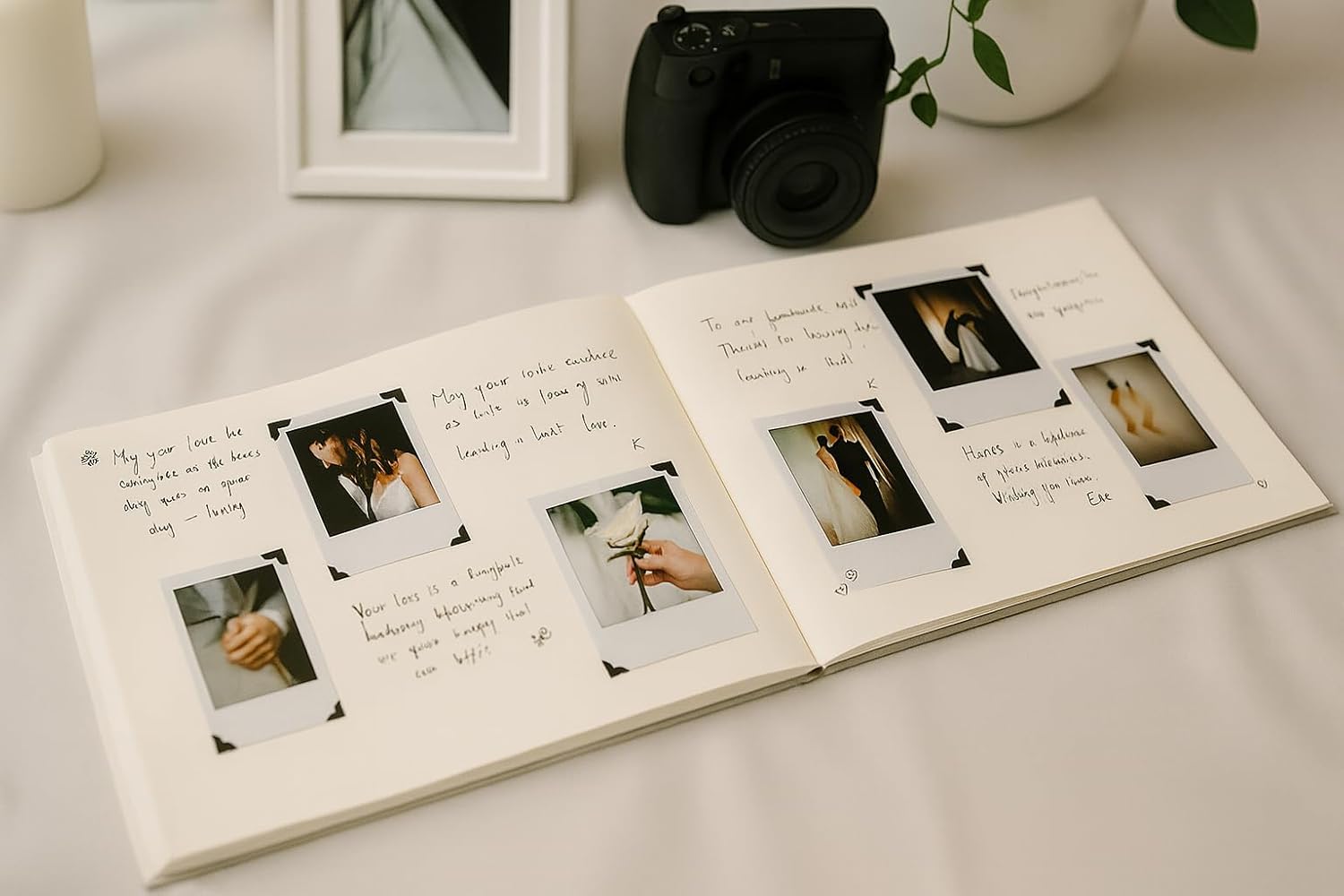 - Polaroid-Friendly Design – Designed as a polaroid wedding guest book for pictures, allowing guests to attach instant photos, add notes, and create a unique wedding sign in book filled with memories.