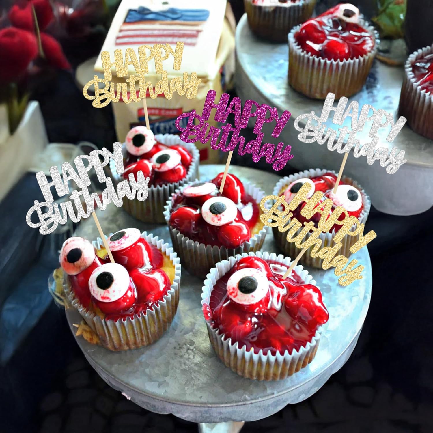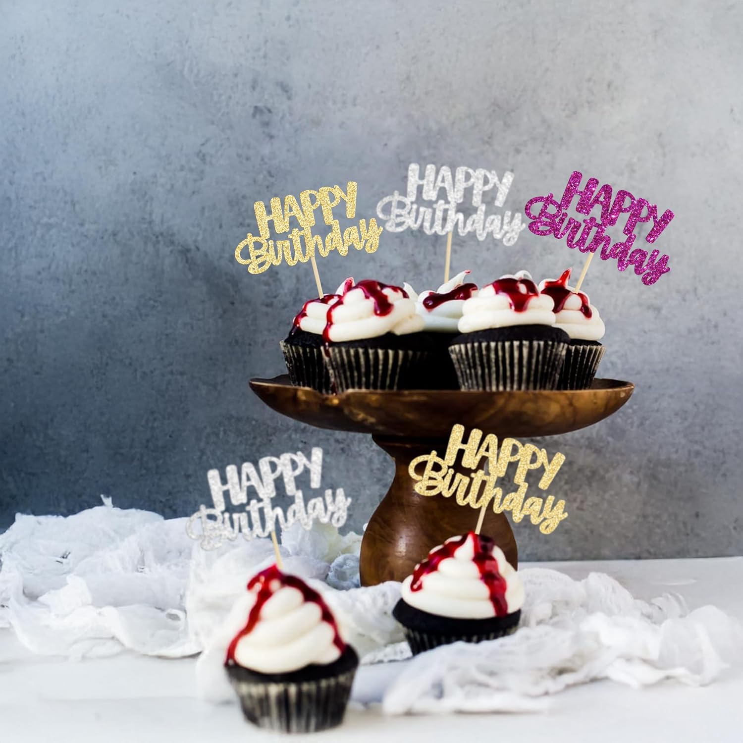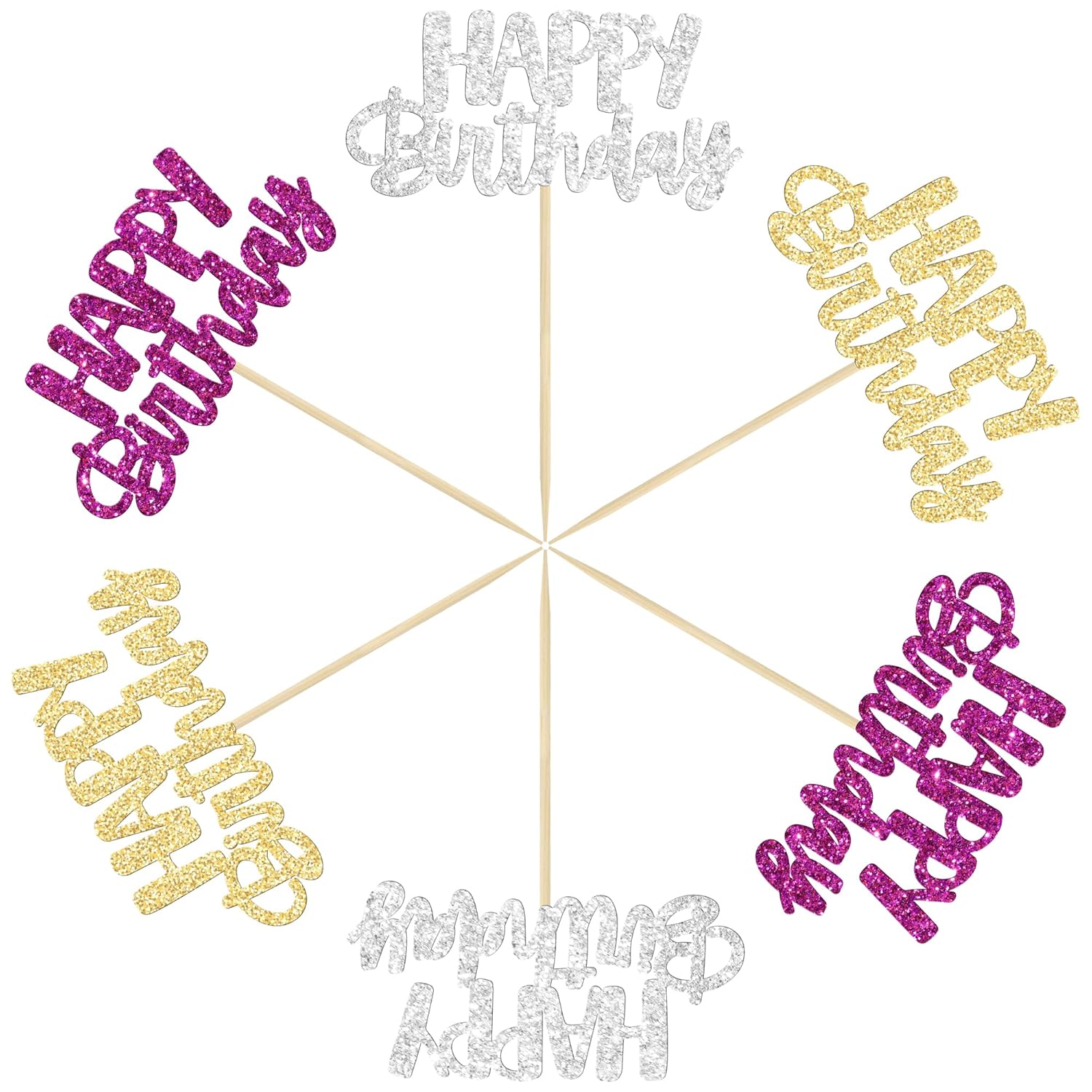 - ๐ Premium Material: These glitter happy birthday cupcake Toppers are made of high quality paper and food-grade toothpick, very safe to put them on cakes, cupcakes, ice cream, fruits, pie, dessert, cheese or any dish and food appetizer you want to decorate.