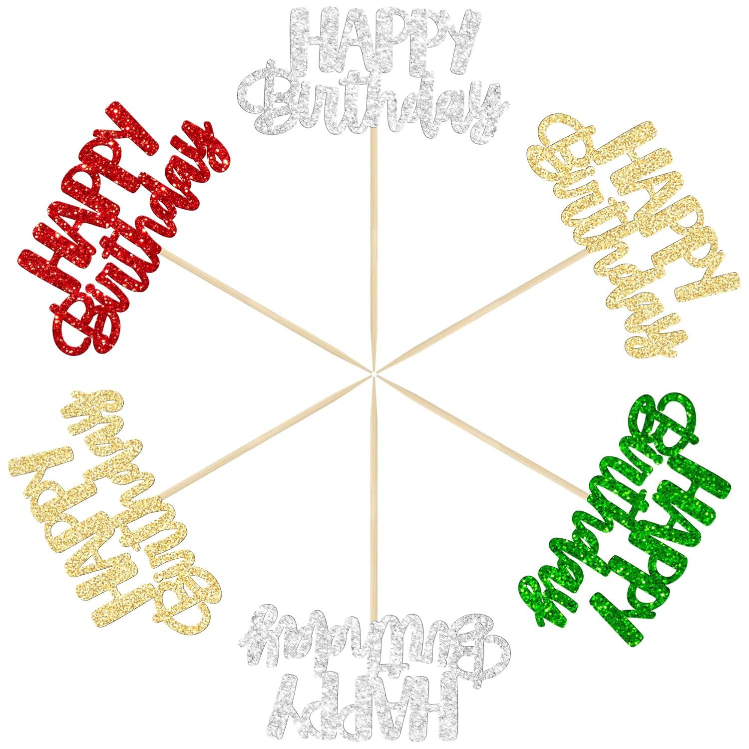 - ๐ Premium Material: These glitter happy birthday cupcake Toppers are made of high quality paper and food-grade toothpick, very safe to put them on cakes, cupcakes, ice cream, fruits, pie, dessert, cheese or any dish and food appetizer you want to decorate.