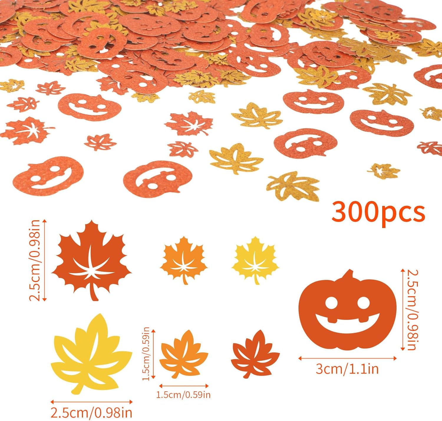 300pcs Fall Glitter Confetti, Autumn Maple Leaf Pumpkin Table Scatter for Thanksgiving Party Birthday Bridal Shower Harvest Decor