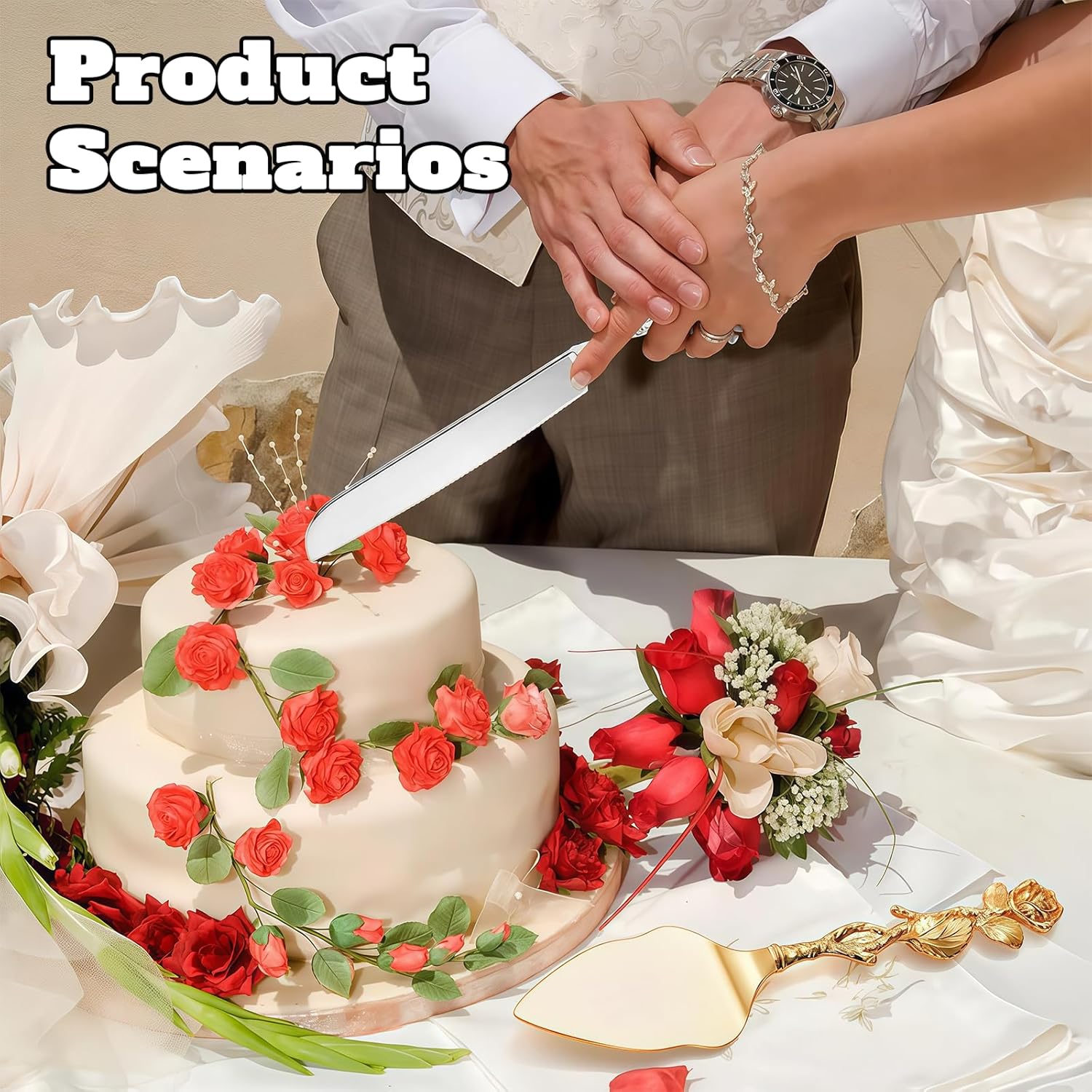 - Premium Silver Cake Cutting Set Quality - Crafted with superior materials featuring a sharp blade, silver-rose handle, and sturdy construction; resistant to bending, easy to clean, and built to last for lifelong use