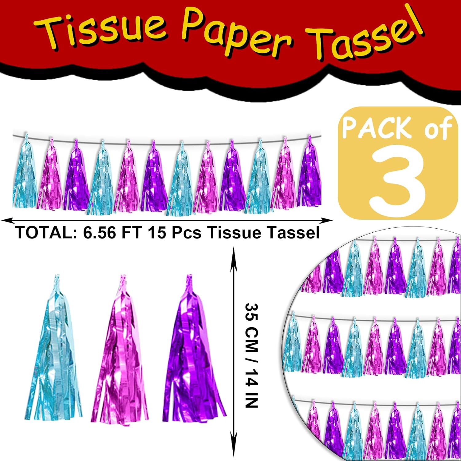 - 【Easy to Use and Saving Time】: All 3 sets of tassel garland banner party decorations are pre-strung, which will save you the hassle of assembly. Tassel garlands are no longer just for parties; they are a great addition to home decor! Bright and eye-catching tissue tassel garlands will add an extra special touch hanging as a photo backdrop at your next party or in your little one’s nursery. Use these gorgeous tassel garland to create a wonderful backdrop or center piece for your party space.